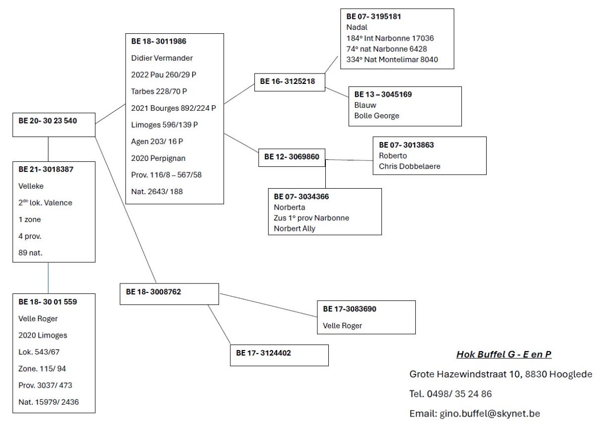 + FOTO + PEDIGREE ! > hok Gino & Elise & Paulien Buffel uit Hooglede (West-Vlaanderen) winnen met BE21-3018387 'Velleke' * 1e ZONAAL Valence II 24 * 89e NAT Valence II (01/07/24) België (Oude) 2.642 & 1e ZN Valence II (01/07) Zone A1 (Oude) 90 & 4e PR Valence II (01/07) PE West-Vlaanderen (Oude) 188