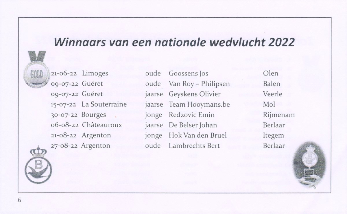 Olivier Geyskens uit Veerle (Antwerpen) wint de eerste Nationaal uit Gueret op 9/07/22 van 12.208 jaarse duiven AWC NATIONAAL.