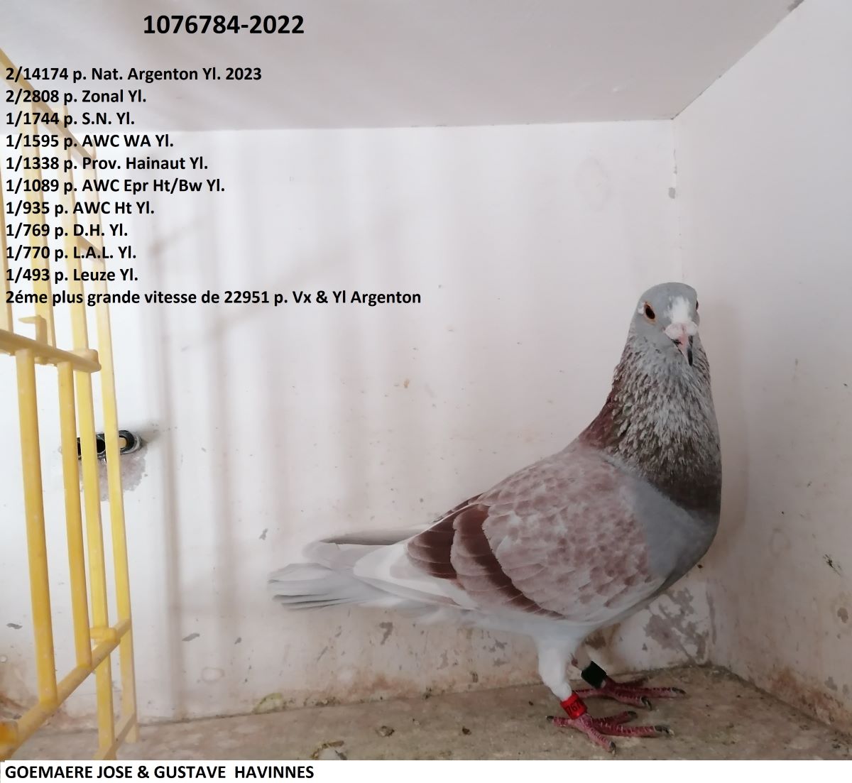 José & Gustave Goemaere uit Havinnes - Doornik (Henegouwen) winnen met BE22-1076784 '784' de