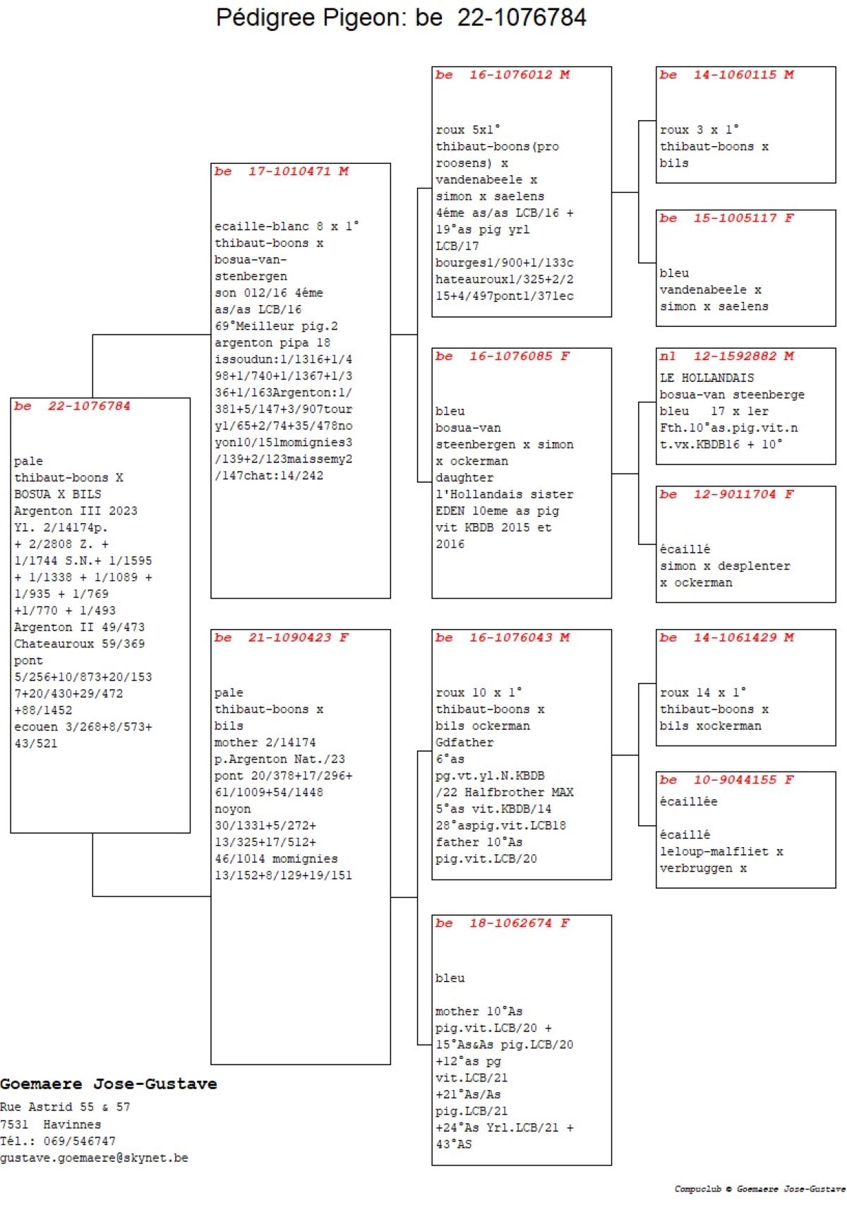 Klik hier voor Afstamming/Pedigree BE22-1076784 '784'