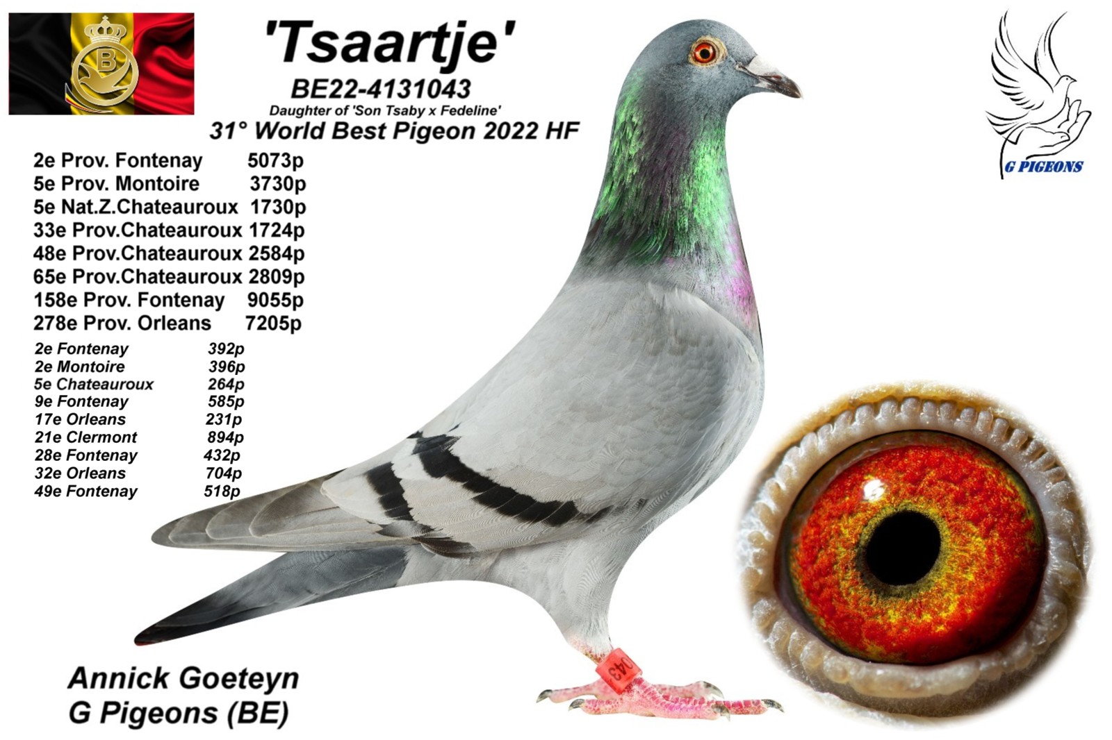 Annick Goeteyn, G Pigeons uit Deinze (Oost-Vlaanderen) winnen met BE22-4131043 'Tsaartje' de