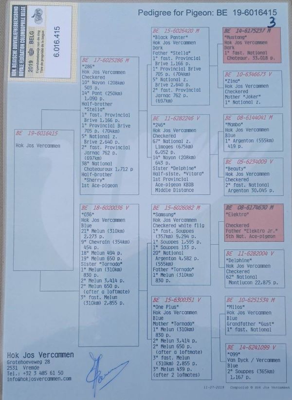 Klik hier voor Afstamming/Pedigree BE19-6016415 Stamboom vader