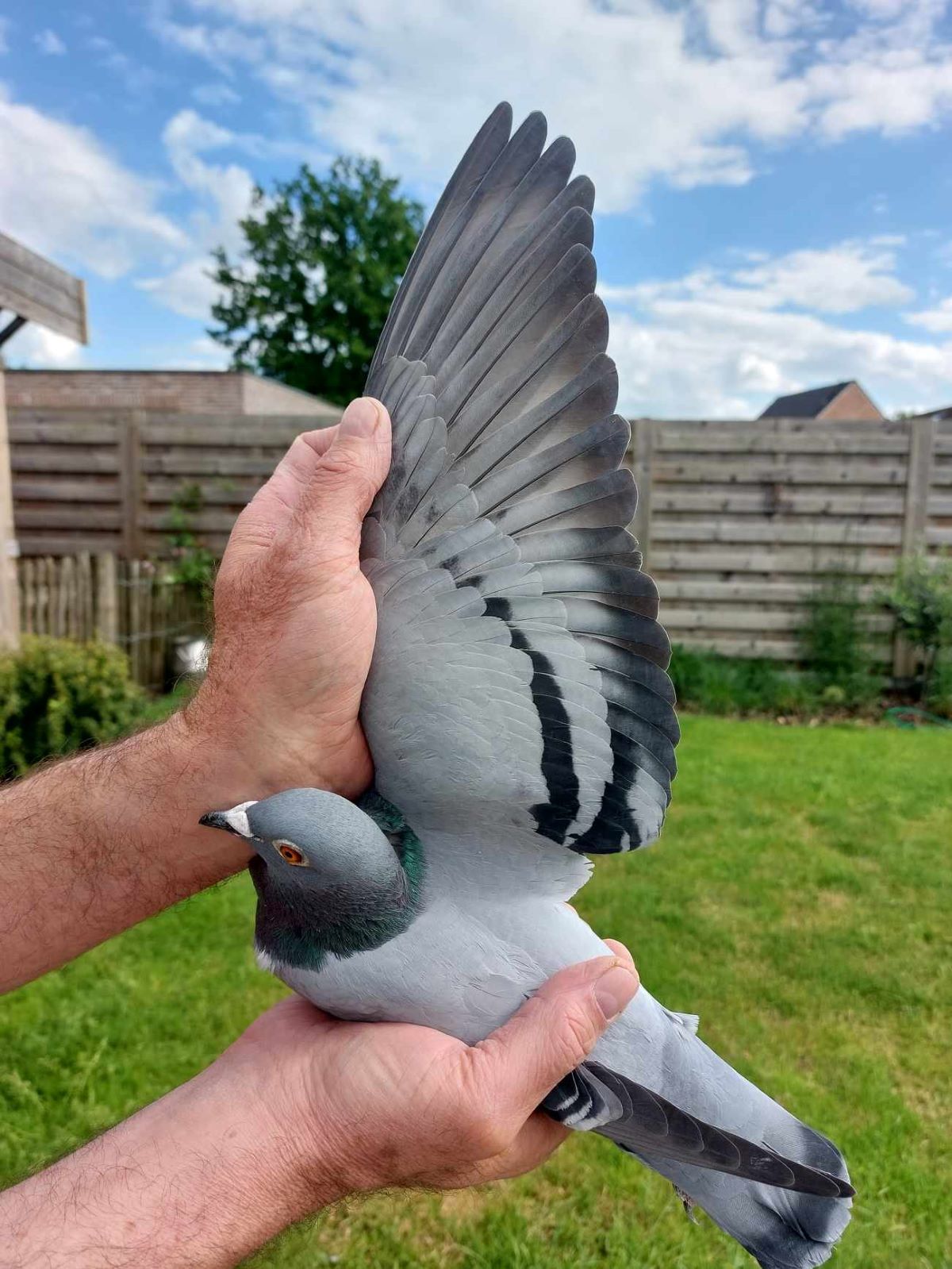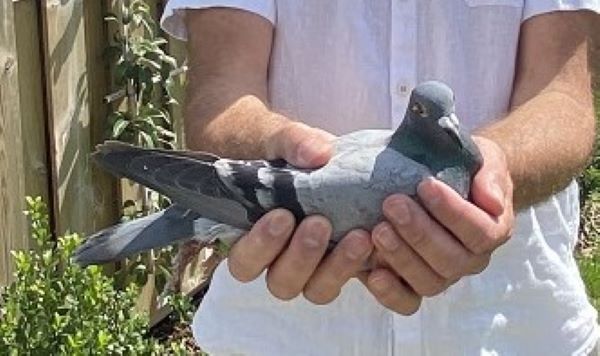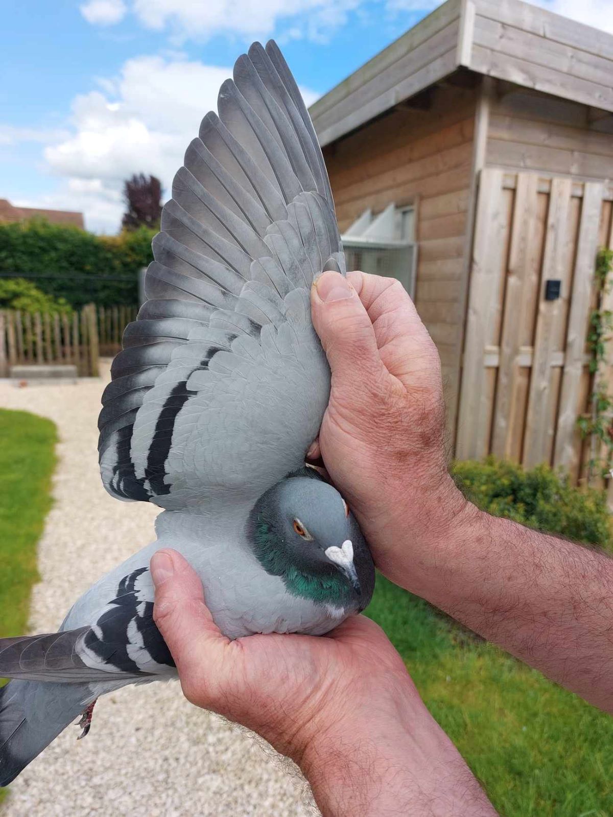 De blauwe duivin met ringnummer BE22-6136878 'Elisabeth' wint