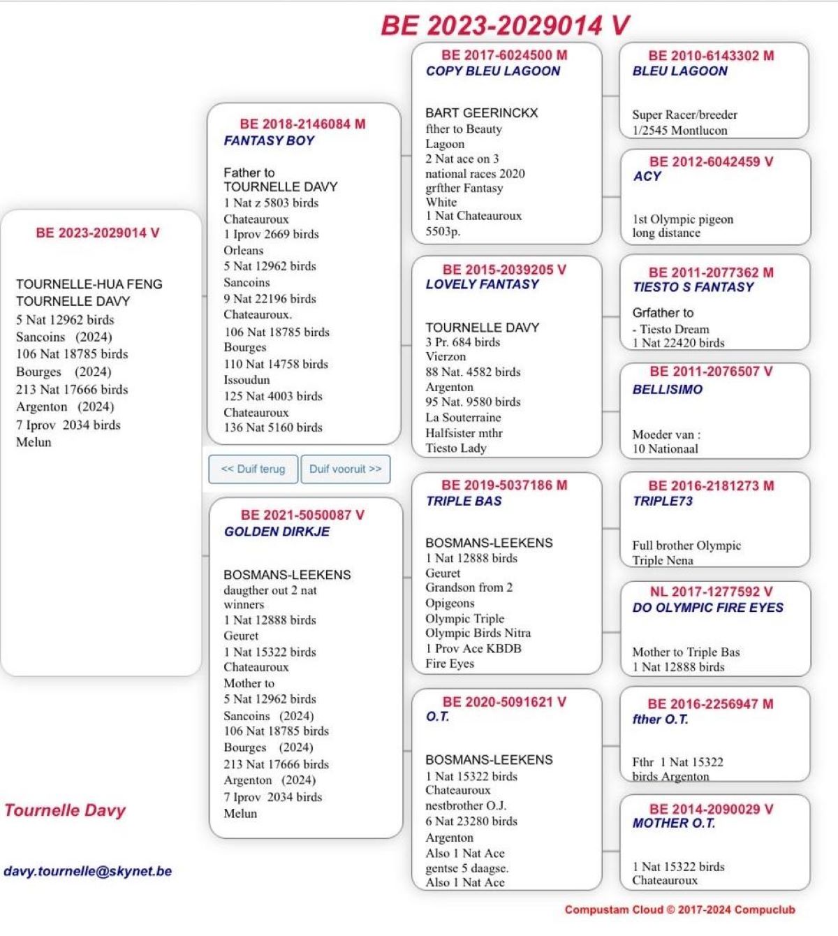 Davy Tournelle uit Rummen - Geetbets (Vlaams-Brabant) & Mr.Hua Feng uit China winnen met BE23-2029014 '014'