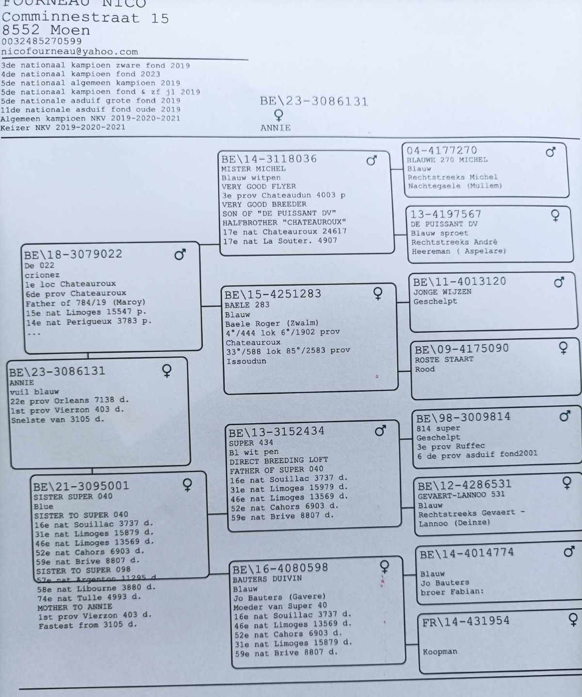 BE23-3086131 'Annie' > 2e A2/1e PR Vierzon 24 >Nico Fourneau (+Foto/Stamboom)*