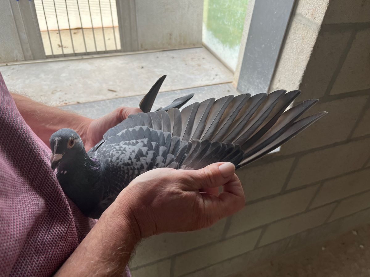 - Deze had als jaarling dus al meer dan 3.000 km in de vleugels alvorens hij naar Agen ging. Dit is eigenlijk wat veel van het goede, maar het was niet onmiddellijk de bedoeling om deze duif op Agen te spelen. Stef wou 1 duivin op Agen spelen voor hun allereerste zware fond vlucht ooit, maar zijn pa pakte er nog 2 andere mee omdat hij geen vertrouwen had in deze duivin. Luc had gelijk want de 2 'aanvulsels' maakten prijs en ook op Narbonne. Het jaar nadien presenteerde deze duif zich op elke vlucht en vloog oa een 1e Argenton 409 d. En opnieuw per tiental op Agen '22, op de rampvlucht van Narbonne '22 kwam hij een week nadien thuis en werd toen op de kweek gezet. Dit bleek de juiste keuze te zijn, een duif die dit aankan als jaarling, provinciaal met een grote voorsprong wint en het jaar nadien bevestigt - ongelooflijk veel karakter heeft om te blijven zoeken, kan geen gewone zijn.