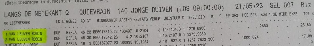 Robin Van Leuven uit Berlaar (Antwerpen) wint met BE23-6017310 '310' de