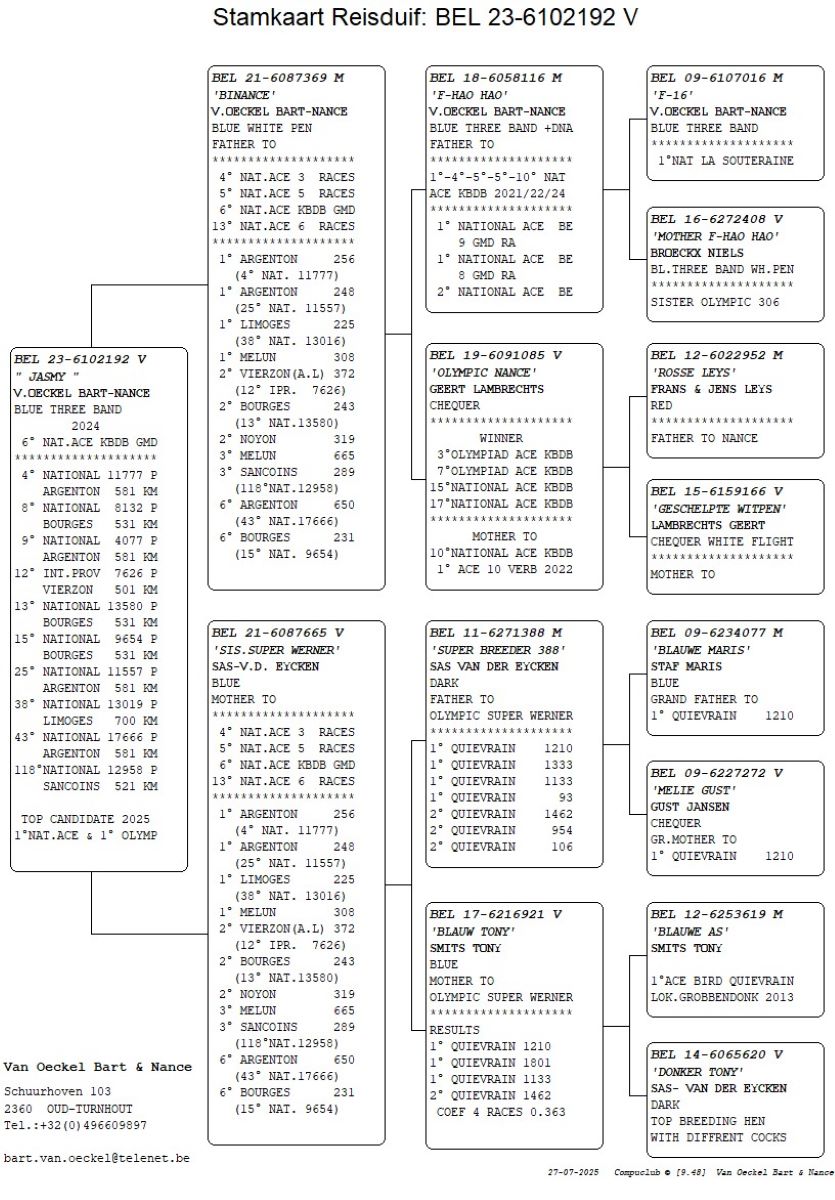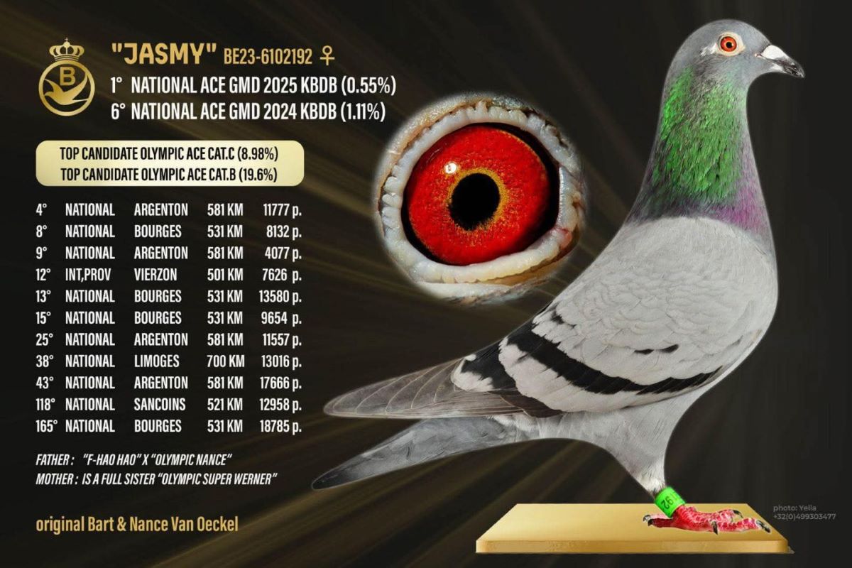 Eindstand in de PIPA ranking: Beste Argenton duif van 2025 en 2024, rekening houdend met volgende uitslag: nationaal, zonaal en provinciaal > https://www.pipa.be/nl/rankings/beste-argenton-duif-van-belgie-2025-en-2024-4-prijzen