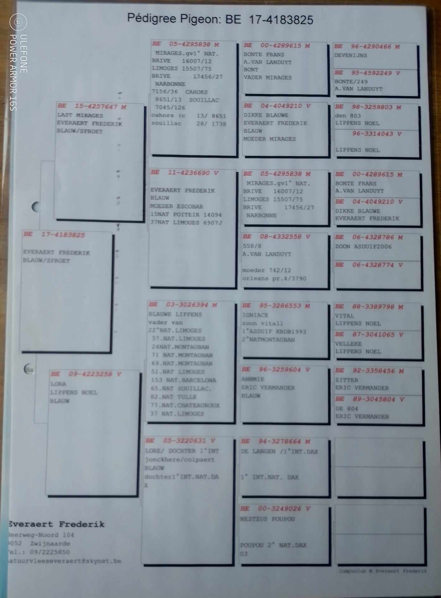 - Klik hier voor Pedigree BE17-4183825 '825', moeder van 'Angel', grootmoeder van BE24-4124055 'Raket'