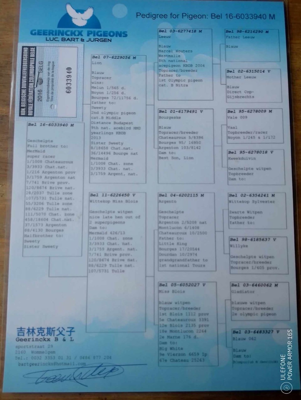 - Klik hier voor Pedigree BE16-6033940 '940', vader van BE24-4124055 'Raket'