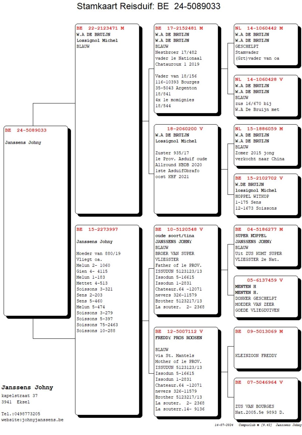 Johny Janssens uit Eksel - Hechtel-Eksel (Limburg) wint met BE24-5089033 '033'
