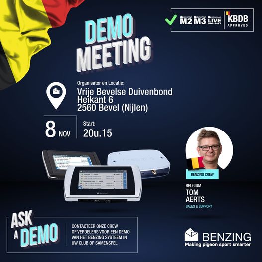 Vrije Bevelse Duivenbond organiseert op vrijdag 8 november een Aidi en Benzing Night met