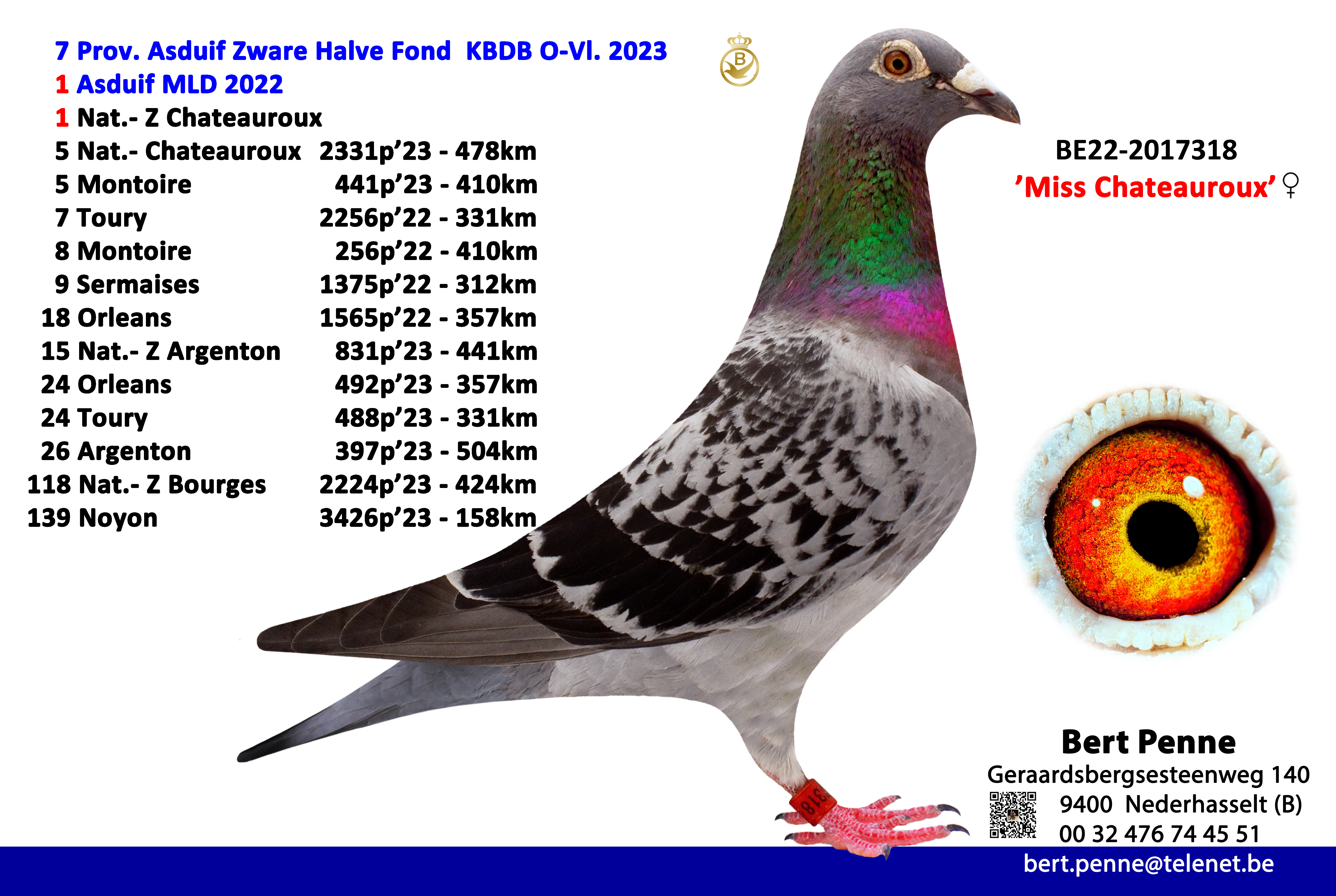 "Miss Chateauroux" BE2017318-22 (Duivin) 7 Prov. Ace pig. K.B.D.B East-Flanders 2023