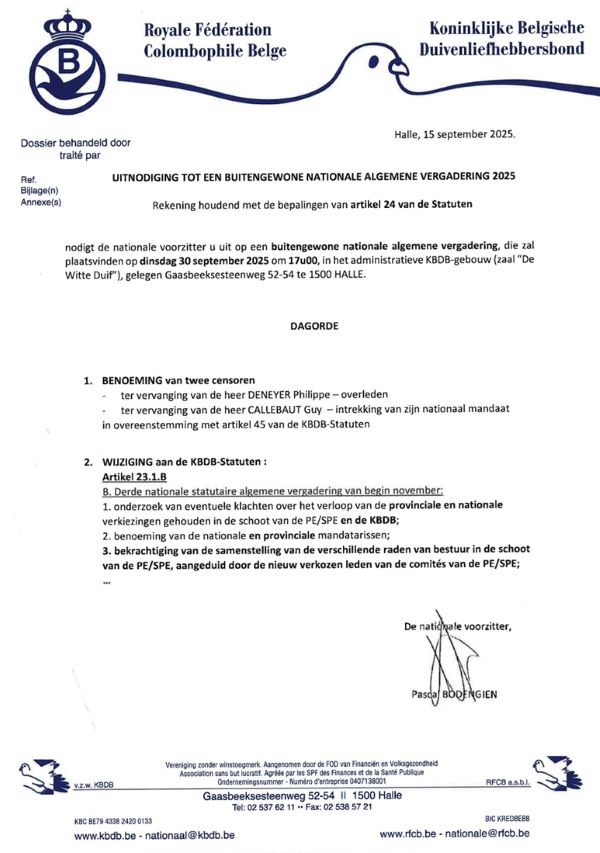Klik hier voor document (.pdf) Buitengewone Nationale Algemene Vergadering 30-09-2025 – Dagorde