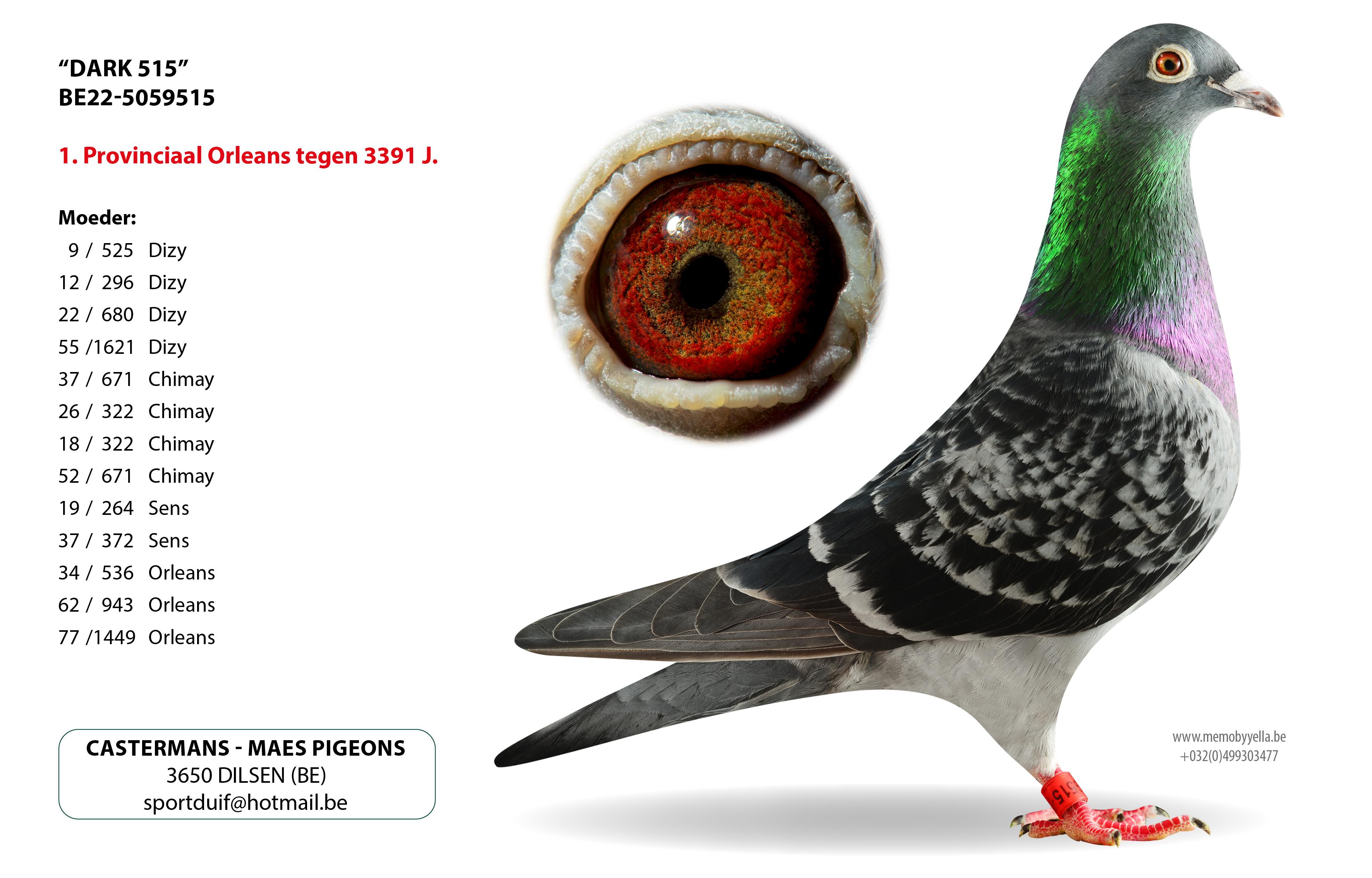Gerry Castermans kreeg de duivenmicrobe mee van grootvader Nico Smeets. Ook Gerry's moeder Sonja kreeg de smaak te pakken en is nu een vaste hulp op de hokken van Castermans-Maes. Eind 2018 kochten Gerry en vriendin Jenny Maes een nieuwe woning in Dilsen en meteen werden er duivenhokken gebouwd, want de beste duiven verhuisden onmiddellijk mee om er een nieuw kweekhok op te starten. In 2019 werd op de huidige locatie enkel met de jonge duiven gespeeld en het duurde niet eens lang vooraleer deze tandem terug in de schijnwerpers stond: het seizoen met deze jonge duiven was amper uit de startblokken of de eerste provinciale overwinning was al een feit. Tegen 3972 jonge duiven won de 5019452/2019 de 1e provinciaal Fay-aux-Loges. Deze jonge duivin had ook een week eerder al haar klasse getoond met 20e provinciaal Sens 4433d!