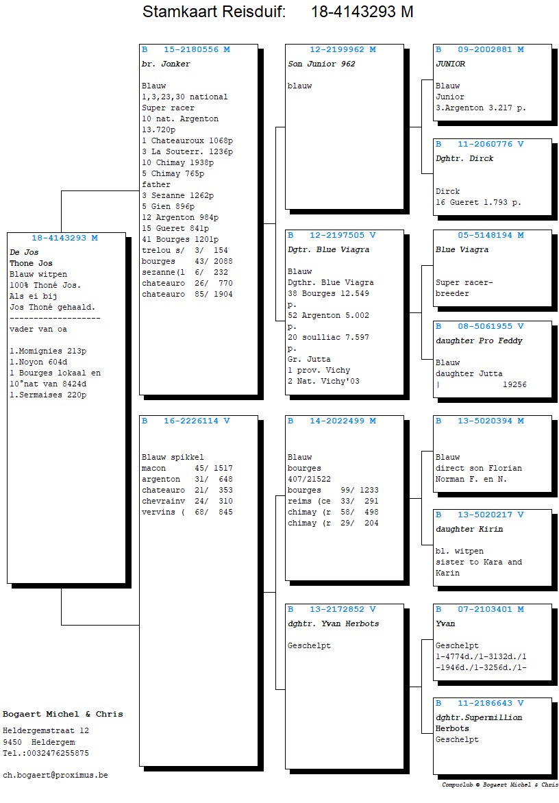 Opmerkelijk detail: beide prijsduiven zijn zonen van doffers die Danny aankocht via een veiling op Pitts. Het toont nog maar eens aan dat doordachte aankopen en een goed kweekbeleid zich vroeg of laat vertalen in topprestaties.