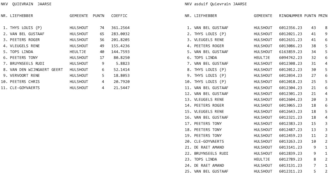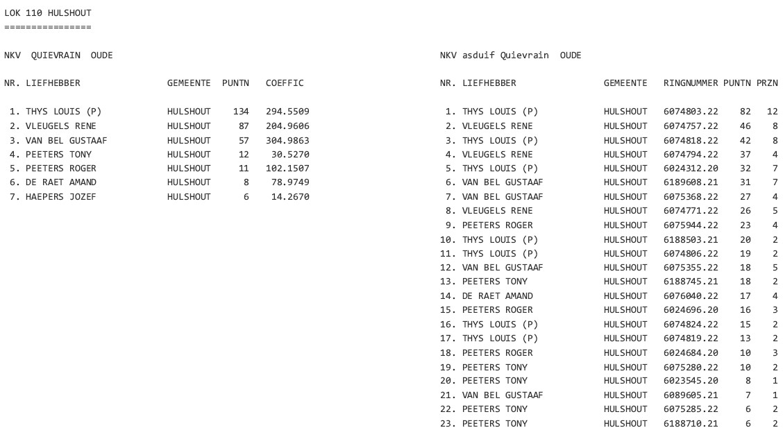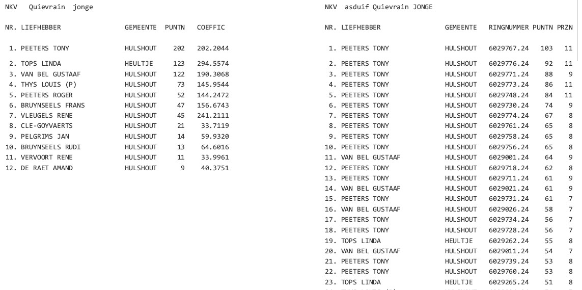 Klik hier voor de Snelle Vlucht HULSHOUT Kampioenschappen 2024 Quievrain Jaarse