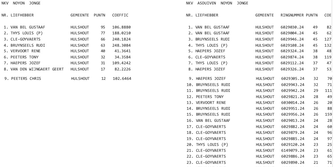 Klik hier voor de Snelle Vlucht HULSHOUT Kampioenschappen 2024 Noyon Jonge