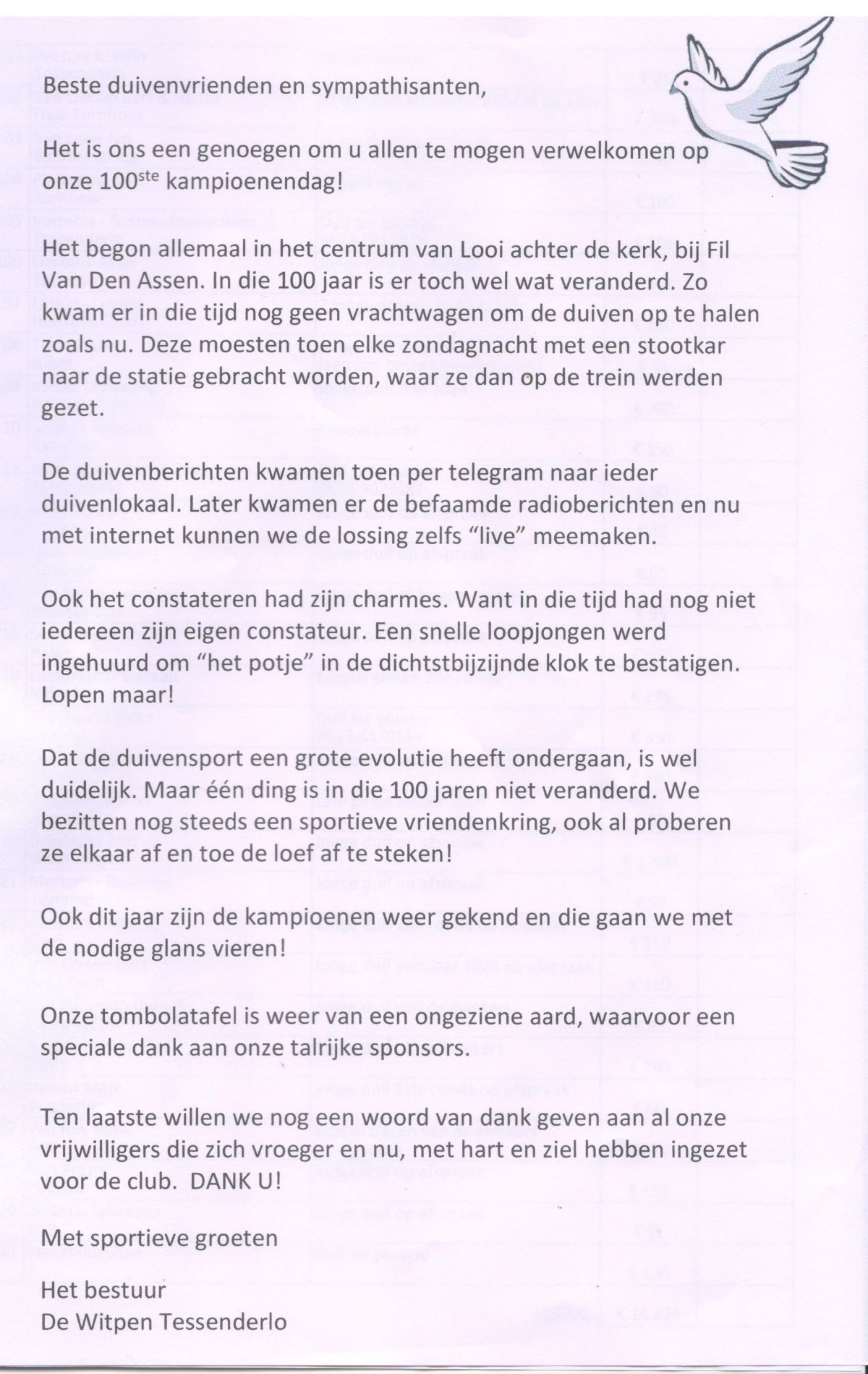 Klik hier voor Overzicht duivenbond Witpen Tessenderlo Kampioenschappen 2023