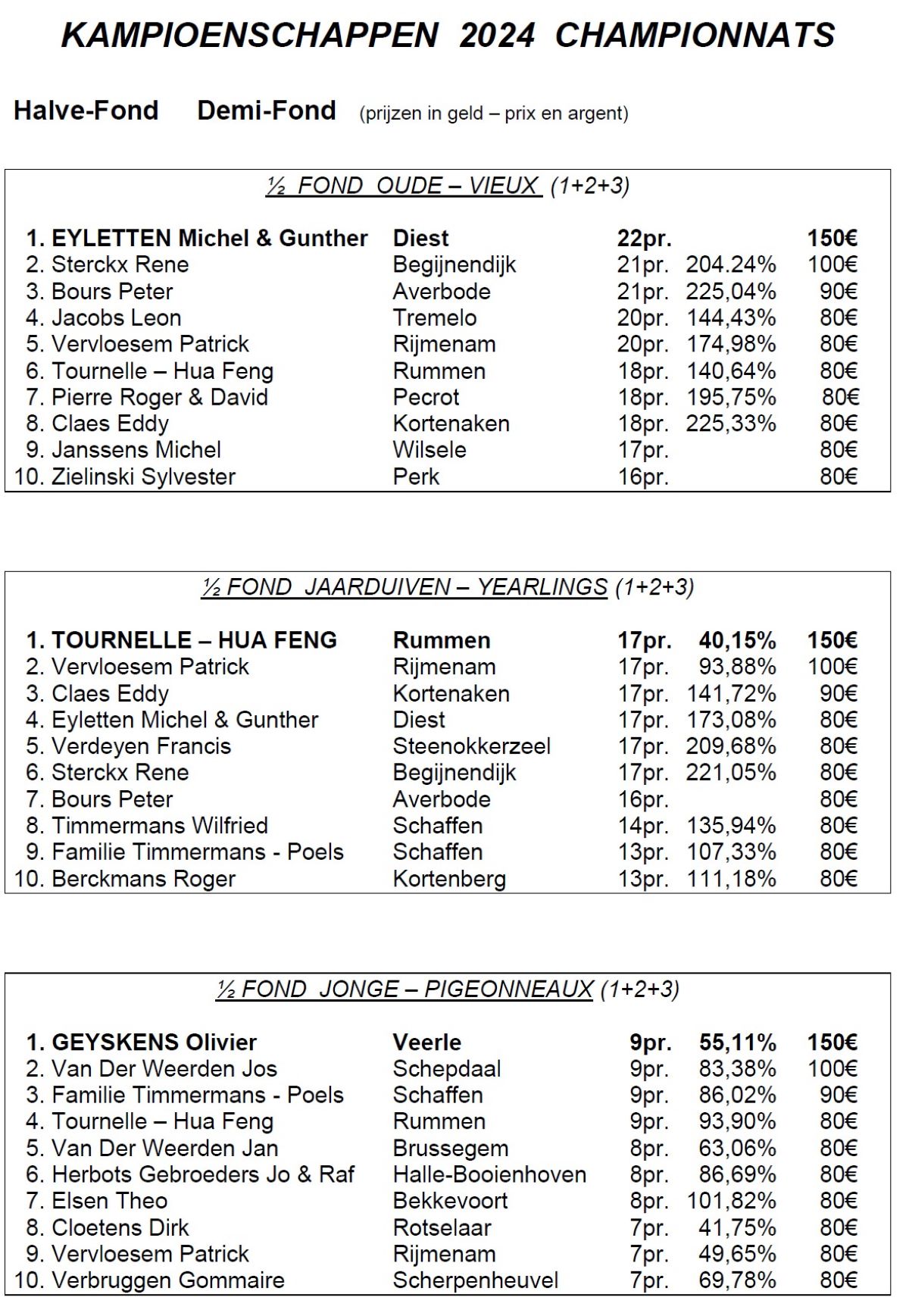 Eddy CLAES werd 3de Halve Fond Jaarse duiven & 8ste Halve Fond Oude duiven 2024 BRABANTSE Unie.