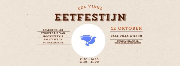 Ons eetfestijn gaat door op zaterdag 12 oktober van 11.30u tot 14.30u en van 17.30u tot 21.00u.