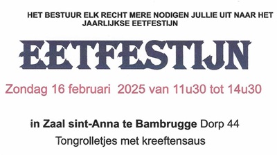 Eetfestijn zon 16/02 Elk zijn Recht MERE