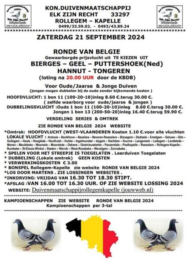Elk zijn Recht ROLLEGEM-KAPELLE RONDE VAN BELGIE zat 21-28 sept & 5-12 okt