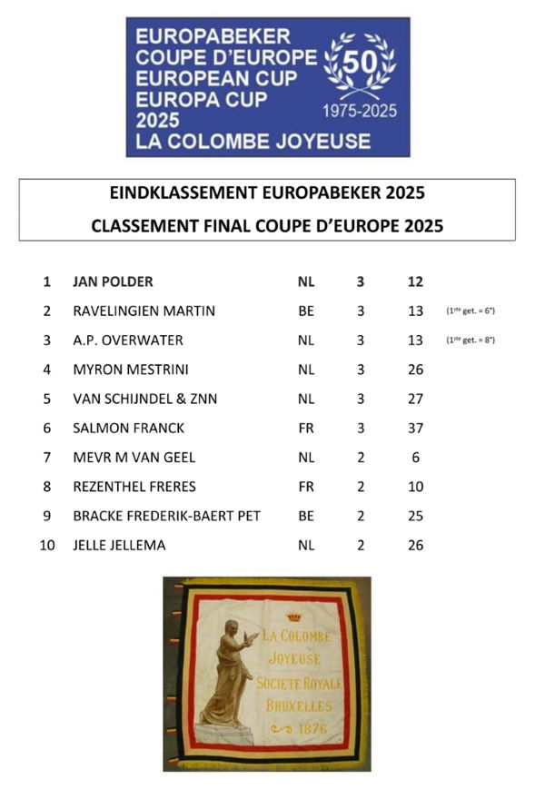 UPDATE - COUPE D'EUROPE - EUROPEAN CUP 16/12/2025 - Nieuw Resultaat - Nouveau Résultat - New Result