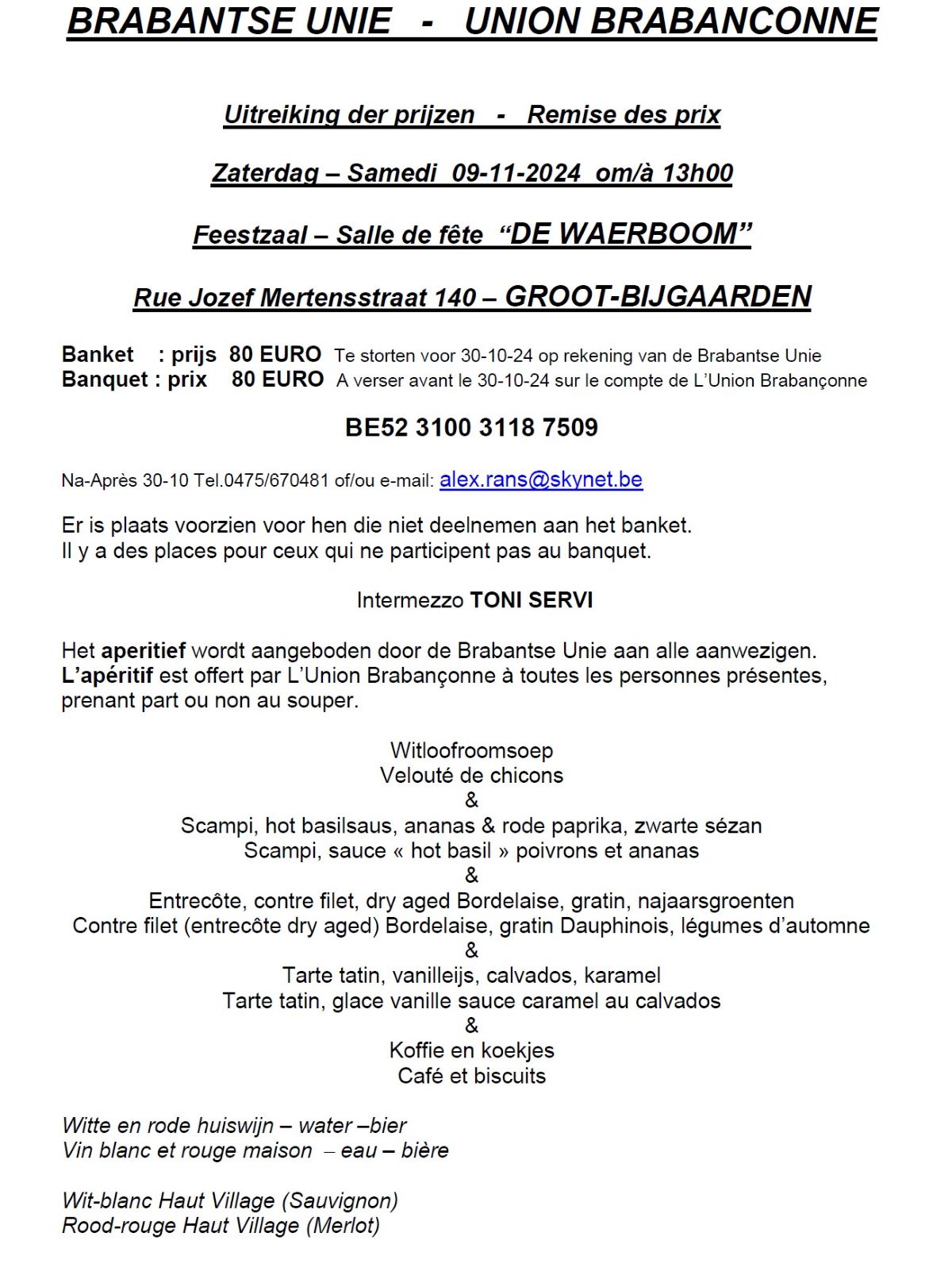 Zaterdag – Samedi 09-11-2024 om/à 13h00