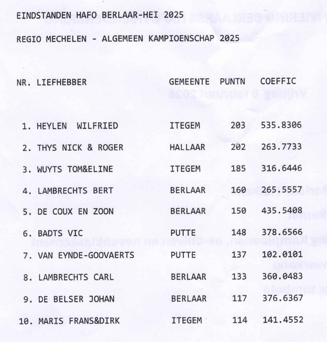 Foto's Huldiging 2025 6 februari 2026 BHV - BERLAARSE HAFO VRIENDENKRING