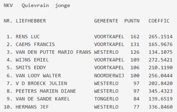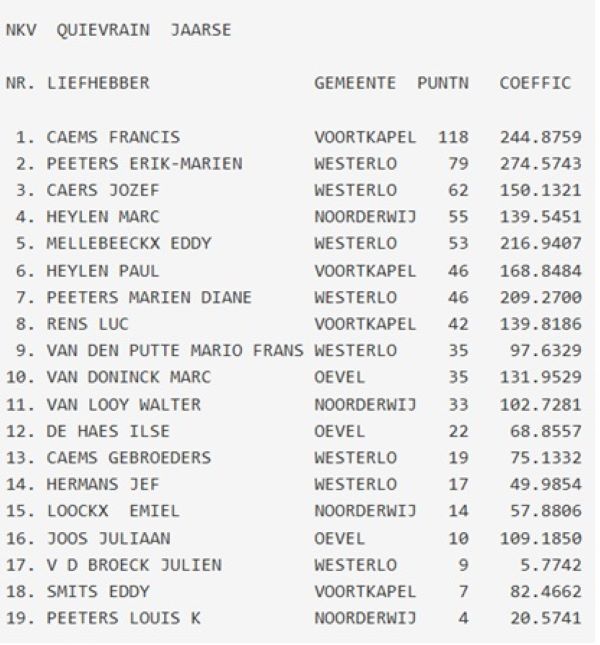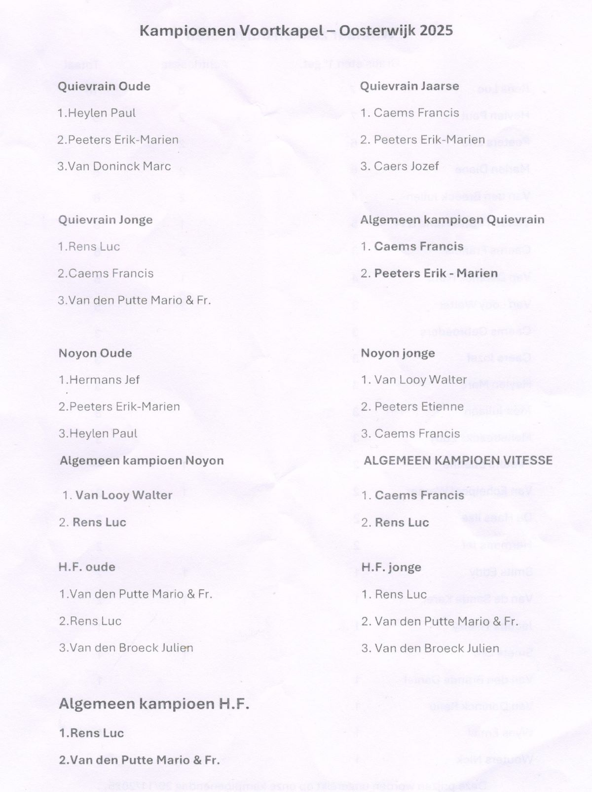 1e ALGEMEEN KAMPIOEN QUIEVRAIN 2025 Traag maar Zeker VOORTKAPEL
