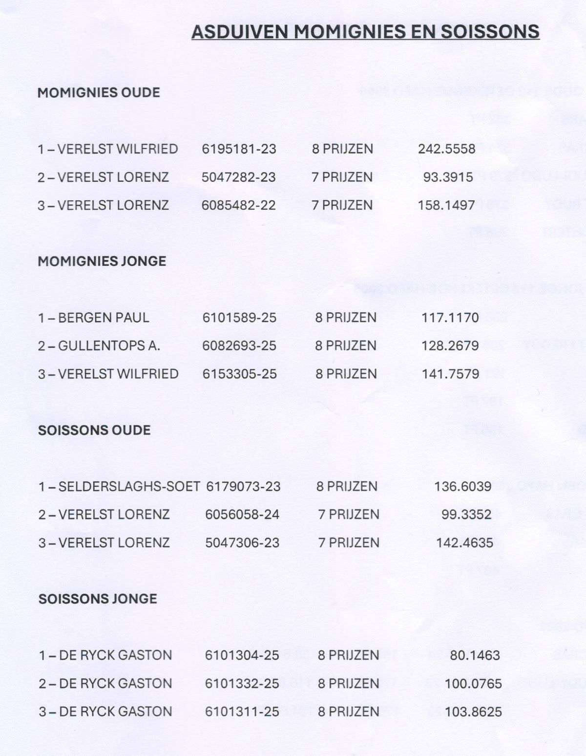 Een mooi resultaat voor Wilfried Verelst uit Heist-o/d-Berg (Antwerpen). * 4 Verm & EREPRIJS Melun / Momignies