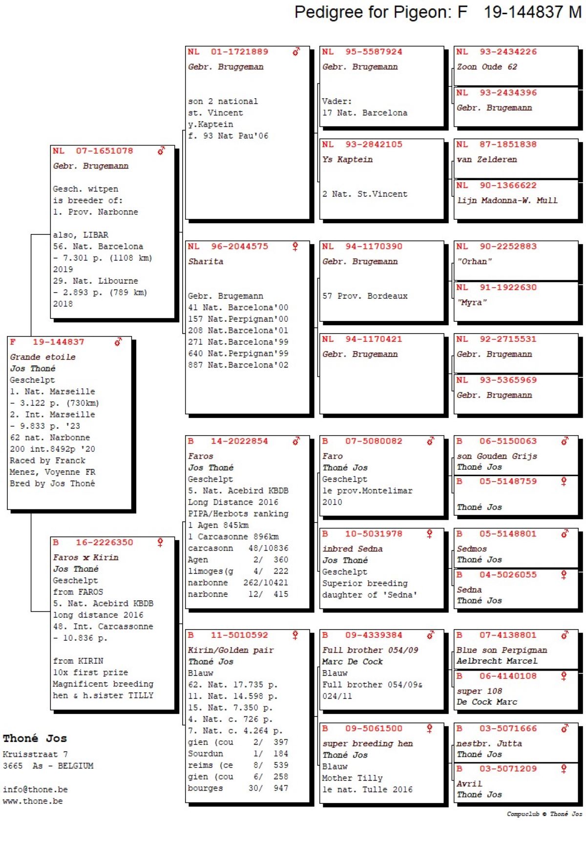 Bred by Jos Thoné from father 'Libar' x daughter 'Faros' and 'Kirin'