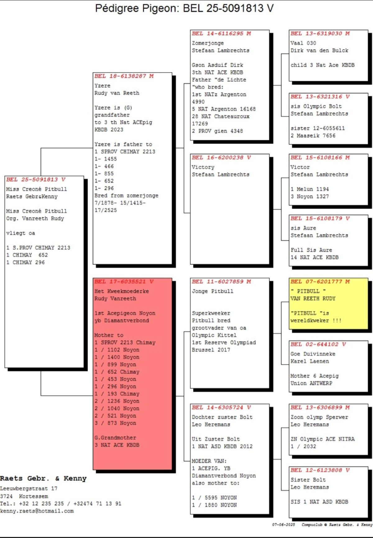BE25-5091813 'Miss Creoné Pitbulll' 1e Chimay 31/05/25 ZUID OOST LIMBURG (2.213 jo) & 1e Chimay 31/05/25 FRUITSTREEK-KOLMONT (652 jo)