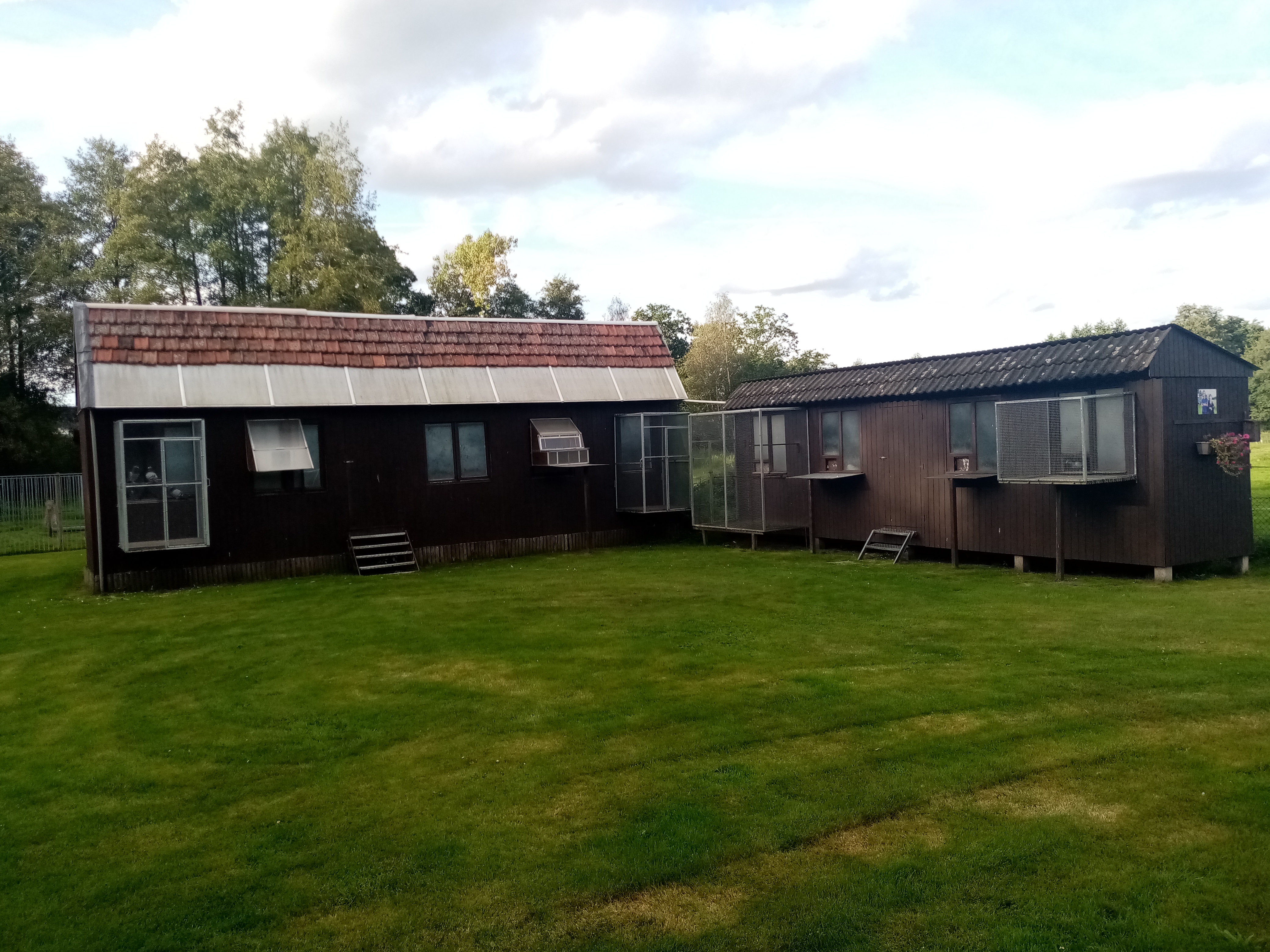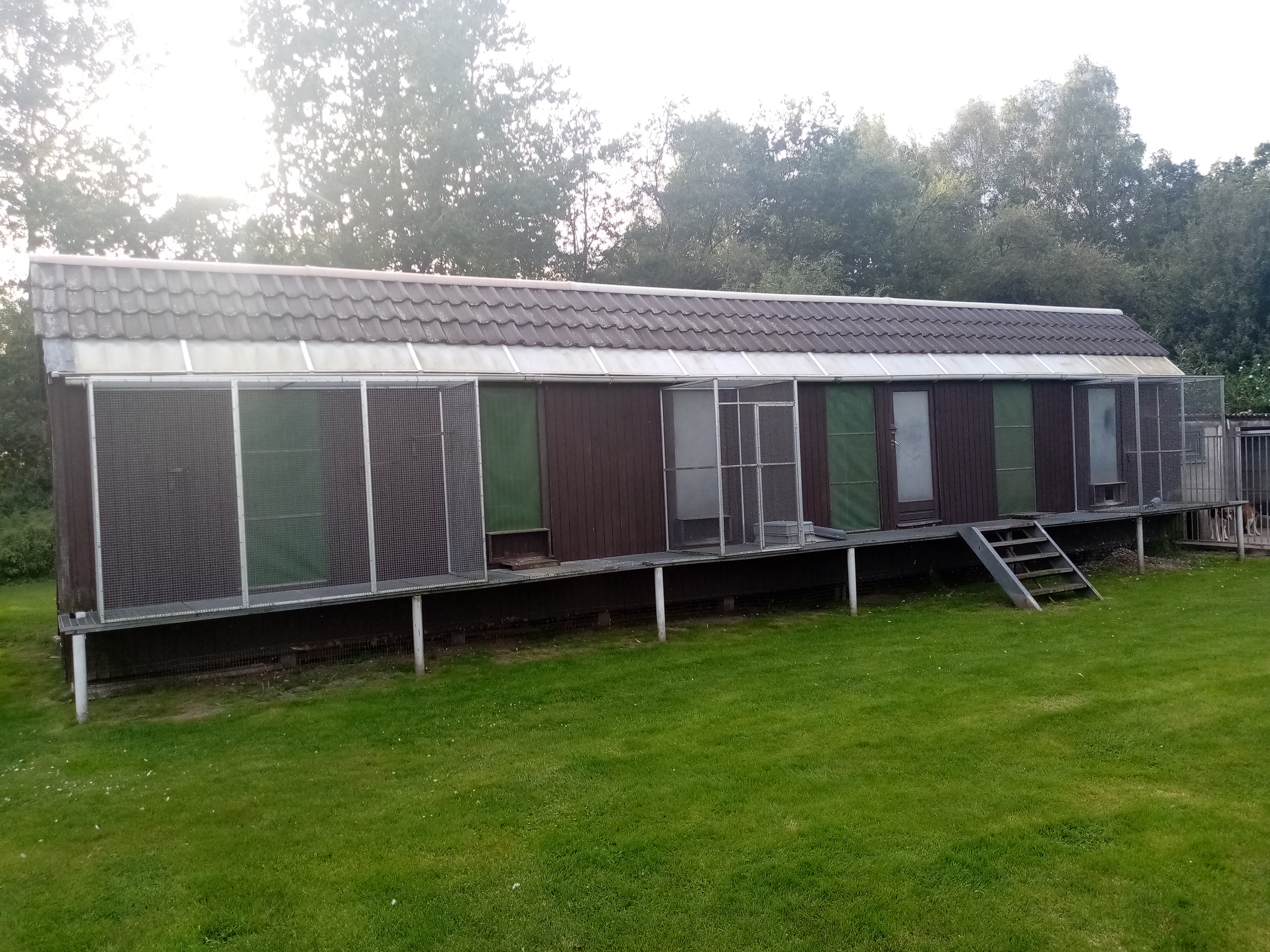 In 1990 is men dan begonnen op de huidige locatie aan de Broekweg 7 te Neeroeteren, een hele mooie locatie met veel ruimte in een bosrijke omgeving. Bos, ja dan denk je ook aan roofvogels, daar hebben ze ten huize Geris inderdaad ook genoeg last van.