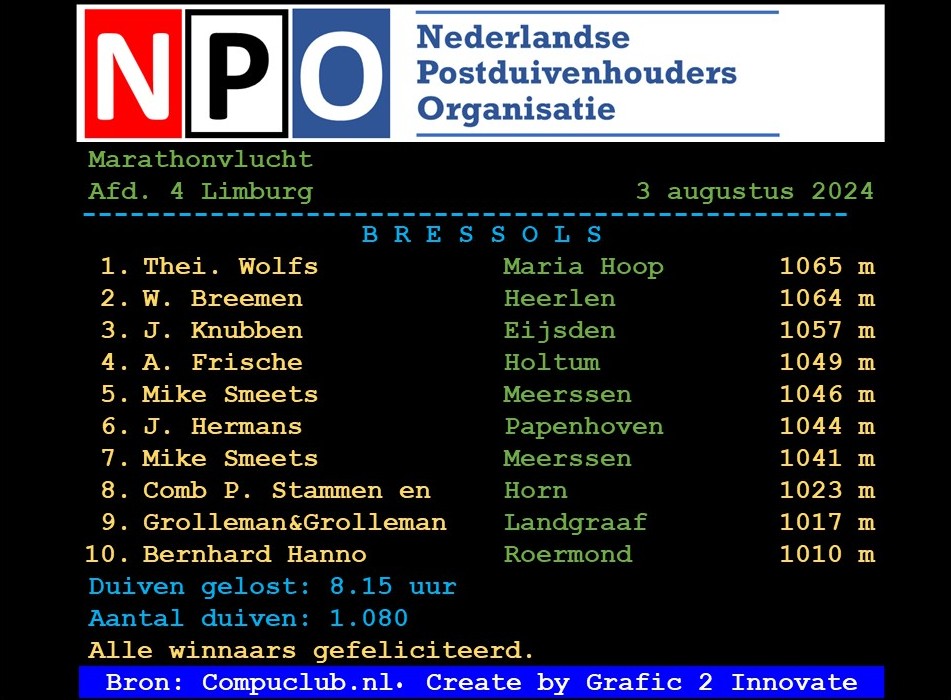 Lokaal en Regionaal elk jaar bij de kampioenen en elk jaar meerdere vluchtoverwinningen | |