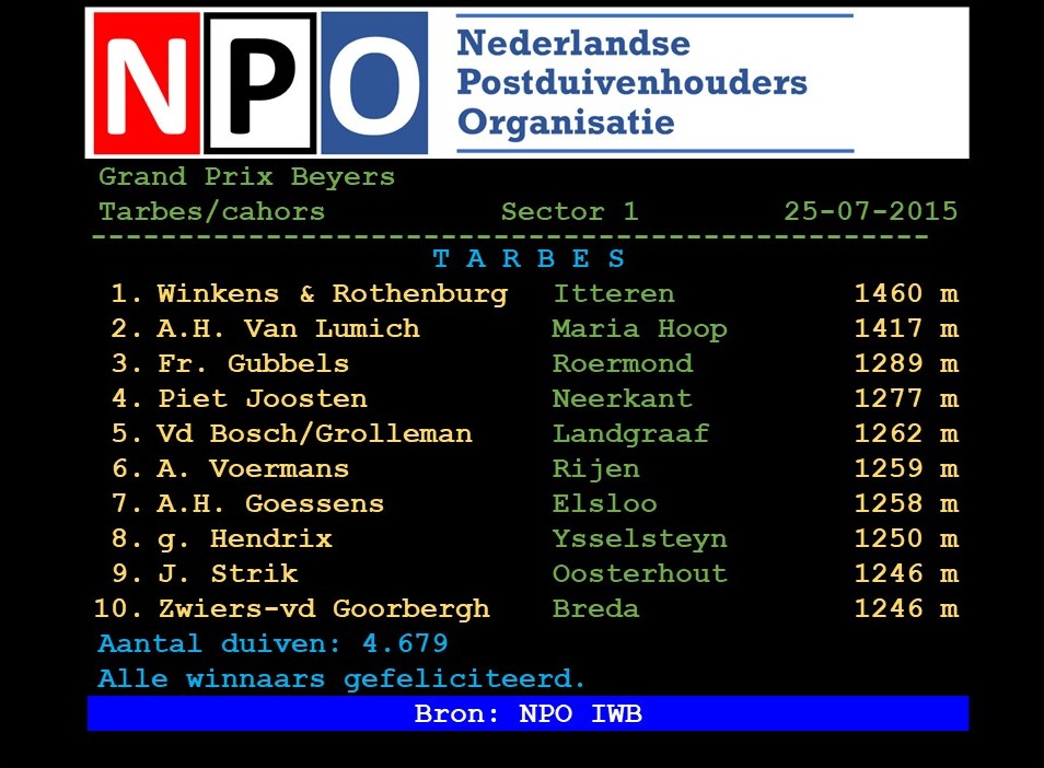 2015 | TARBES middaglossing | 5410 | 5 | snelste jaarling nationaal |