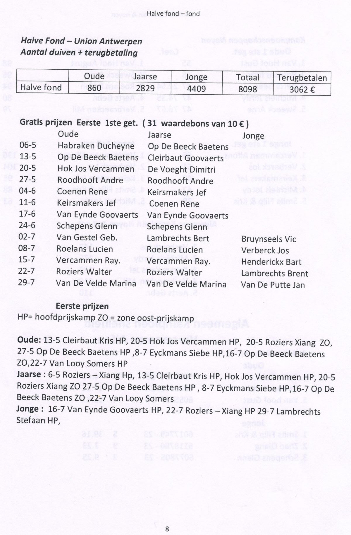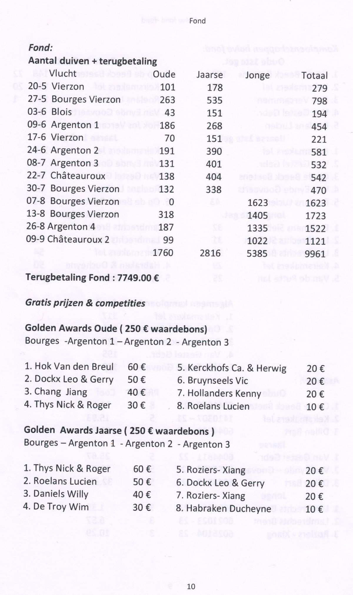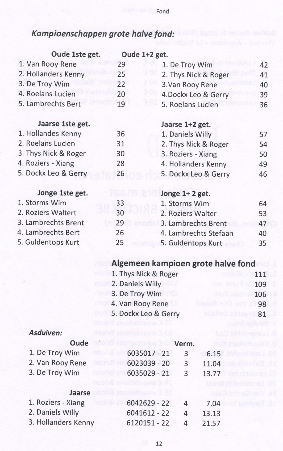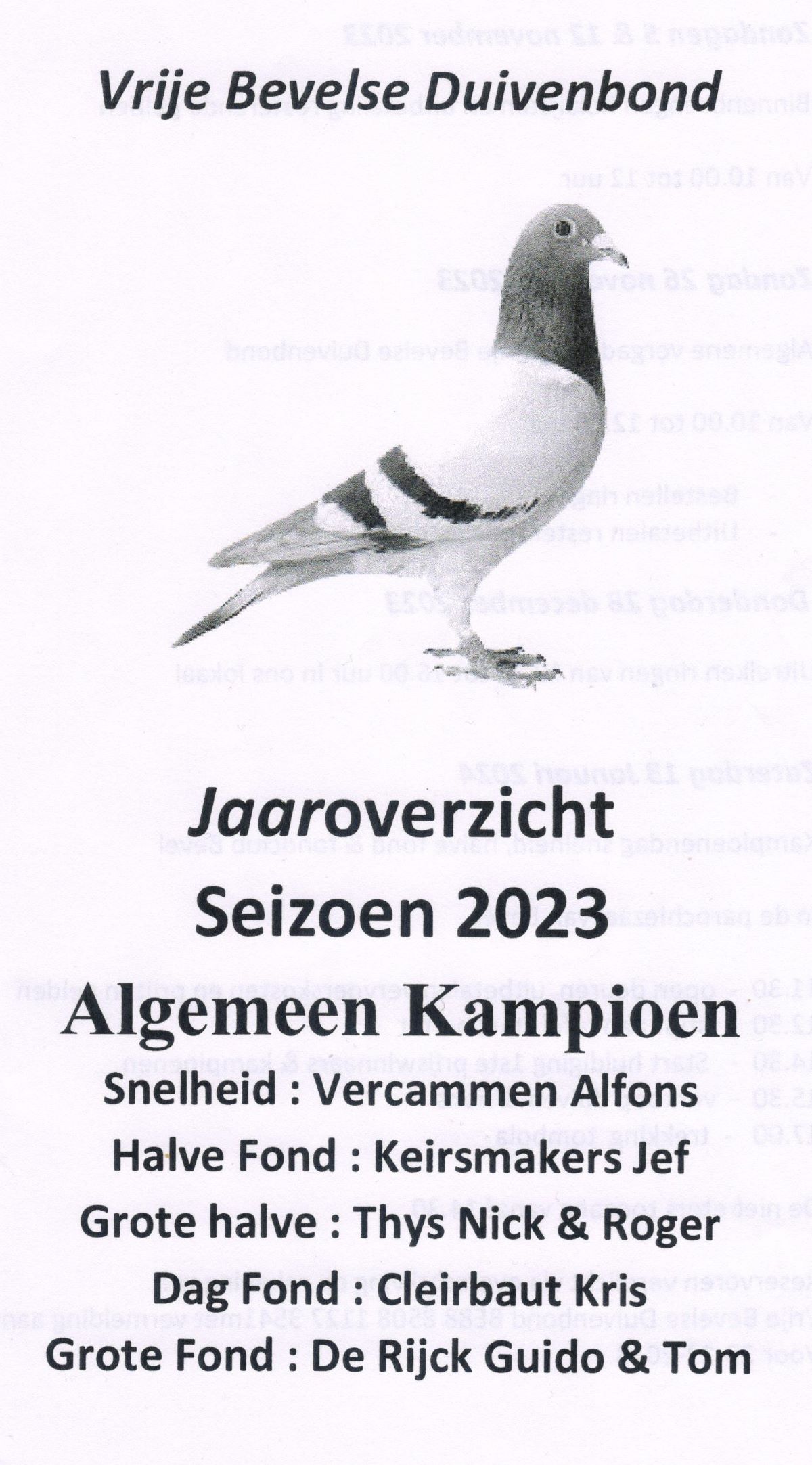 Kampioen Jaarse duiven 1+2e get Grote Fond: Tom & Guido De Rijck