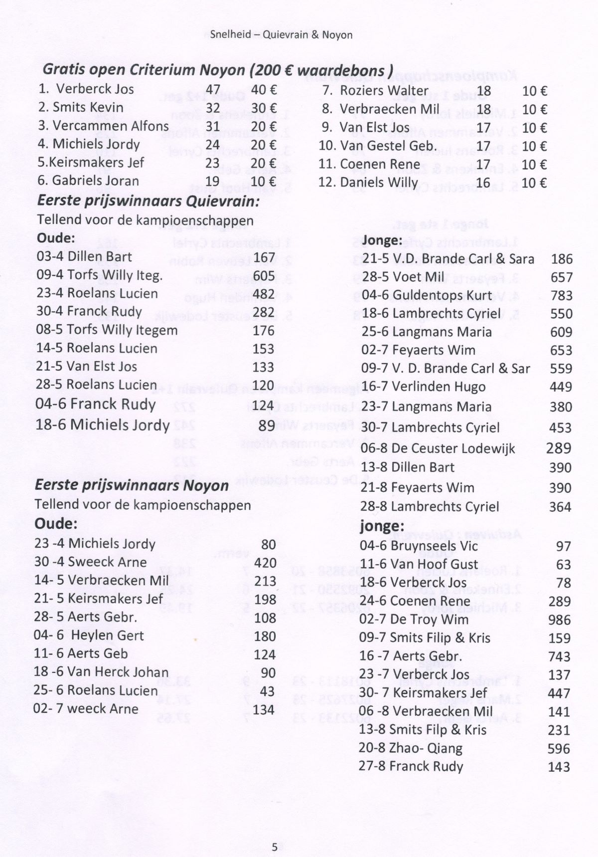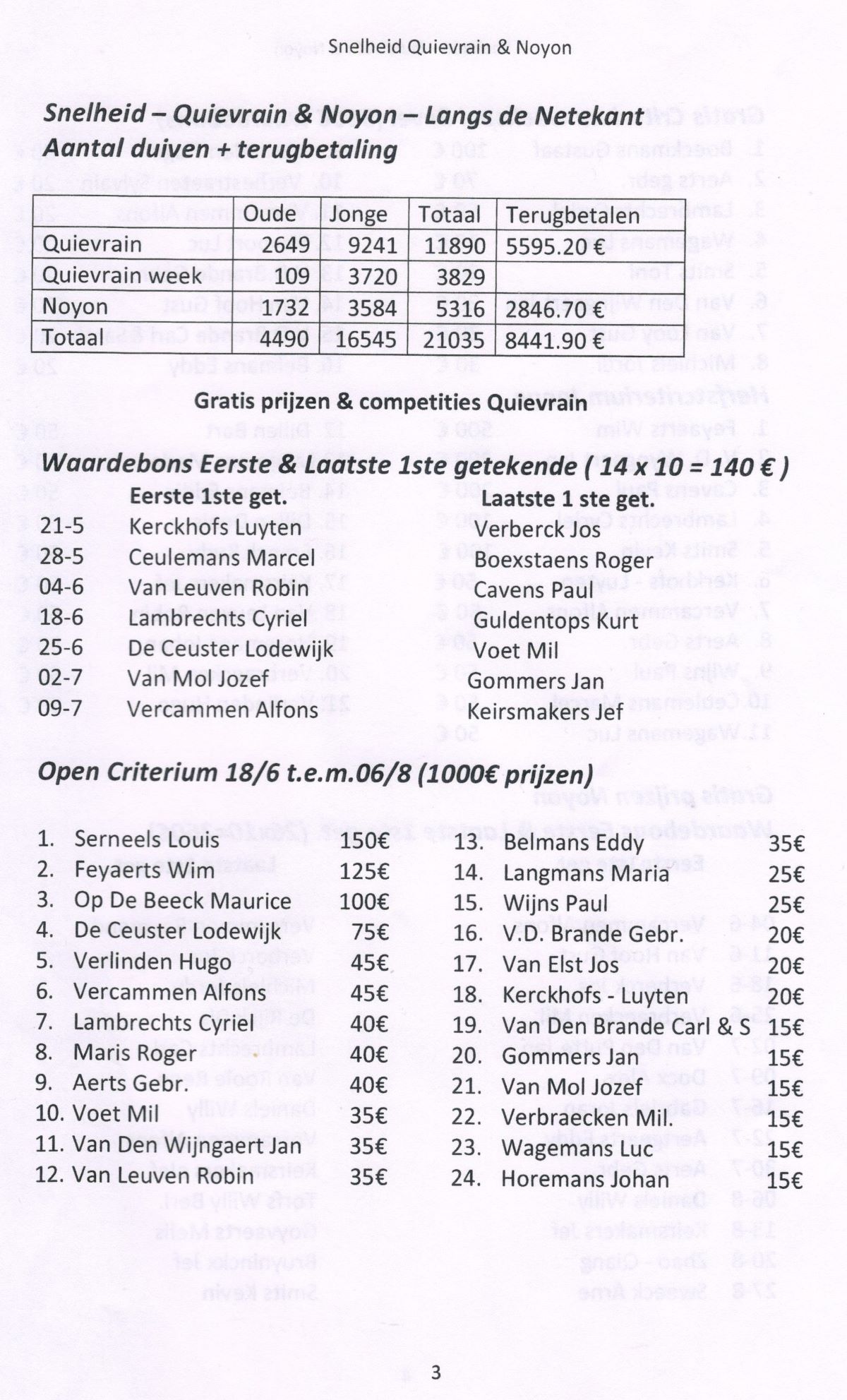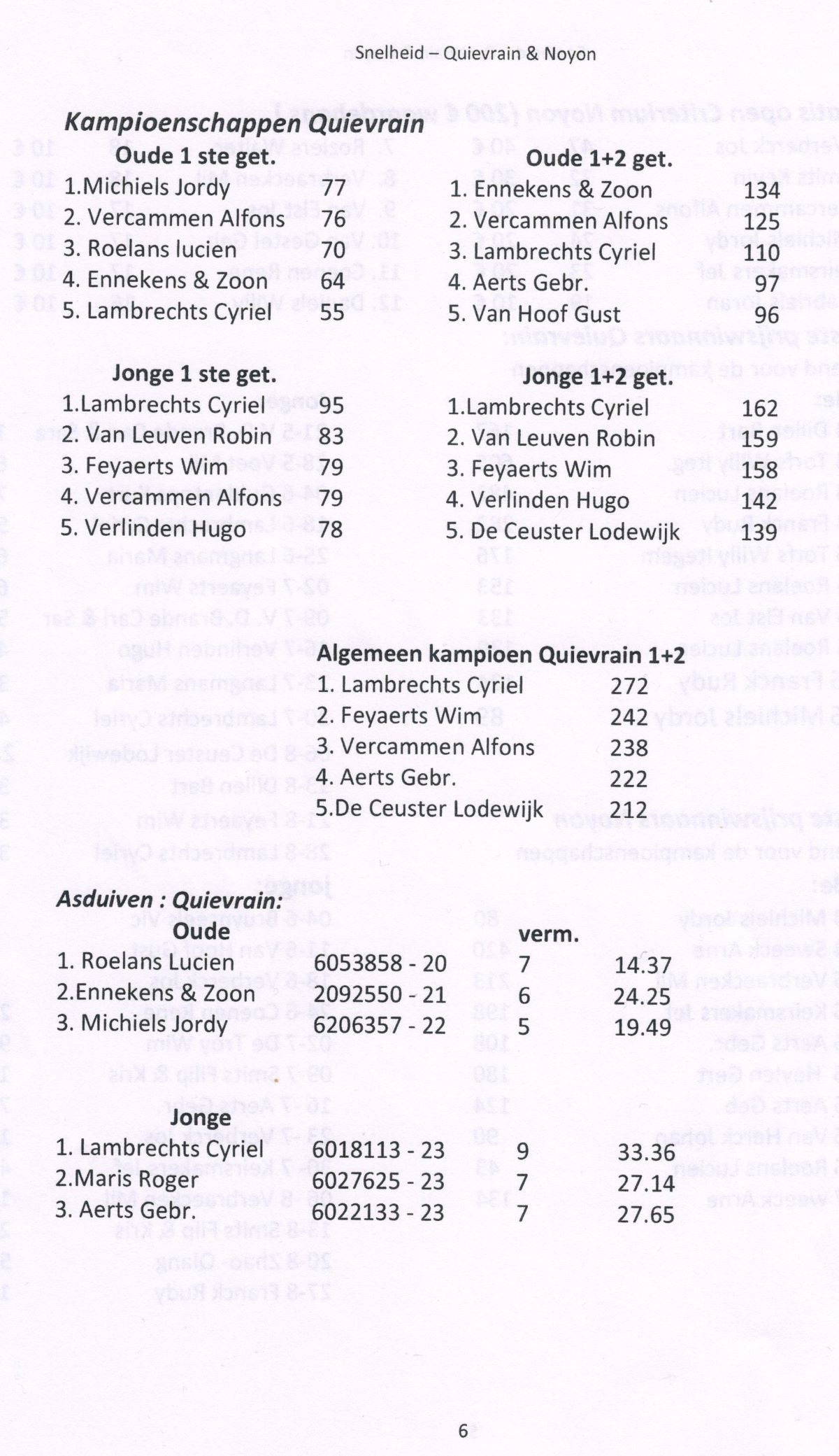 Kampioen Oude duiven 1+2e get Quievrain: Ennekens & zoon