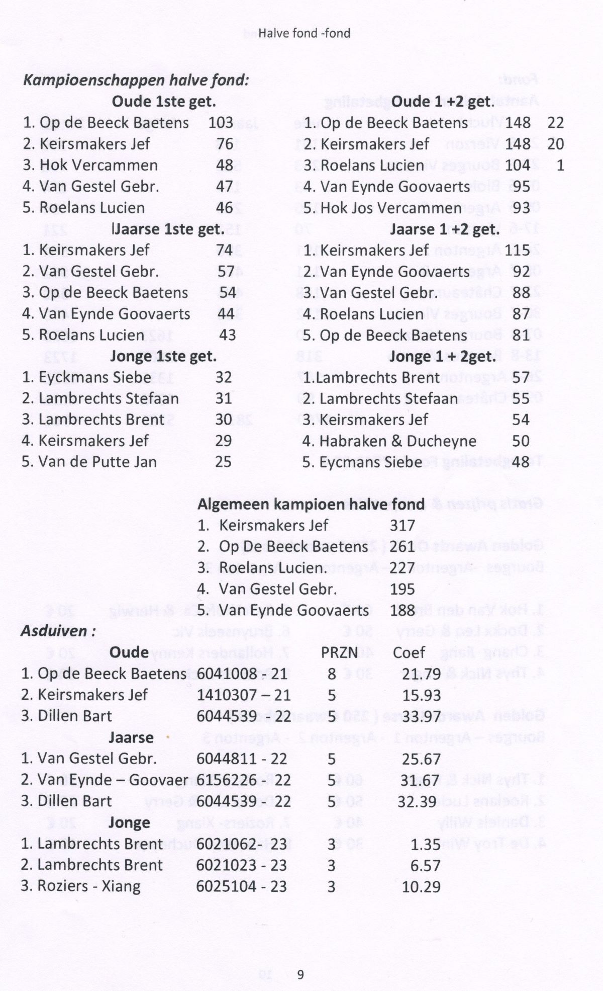Kampioen Oude duiven 1+2e get Halve Fond: Op De Beeck-Baetens
