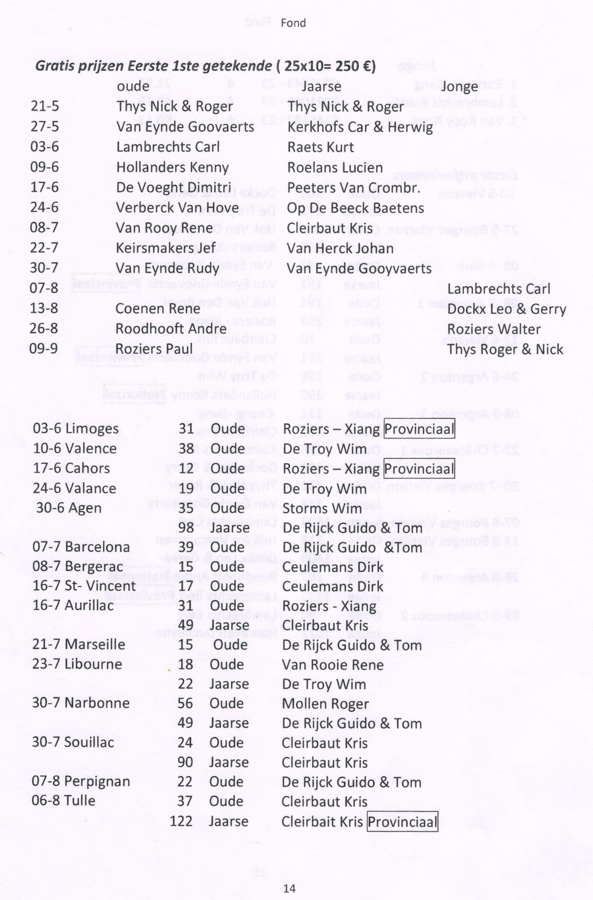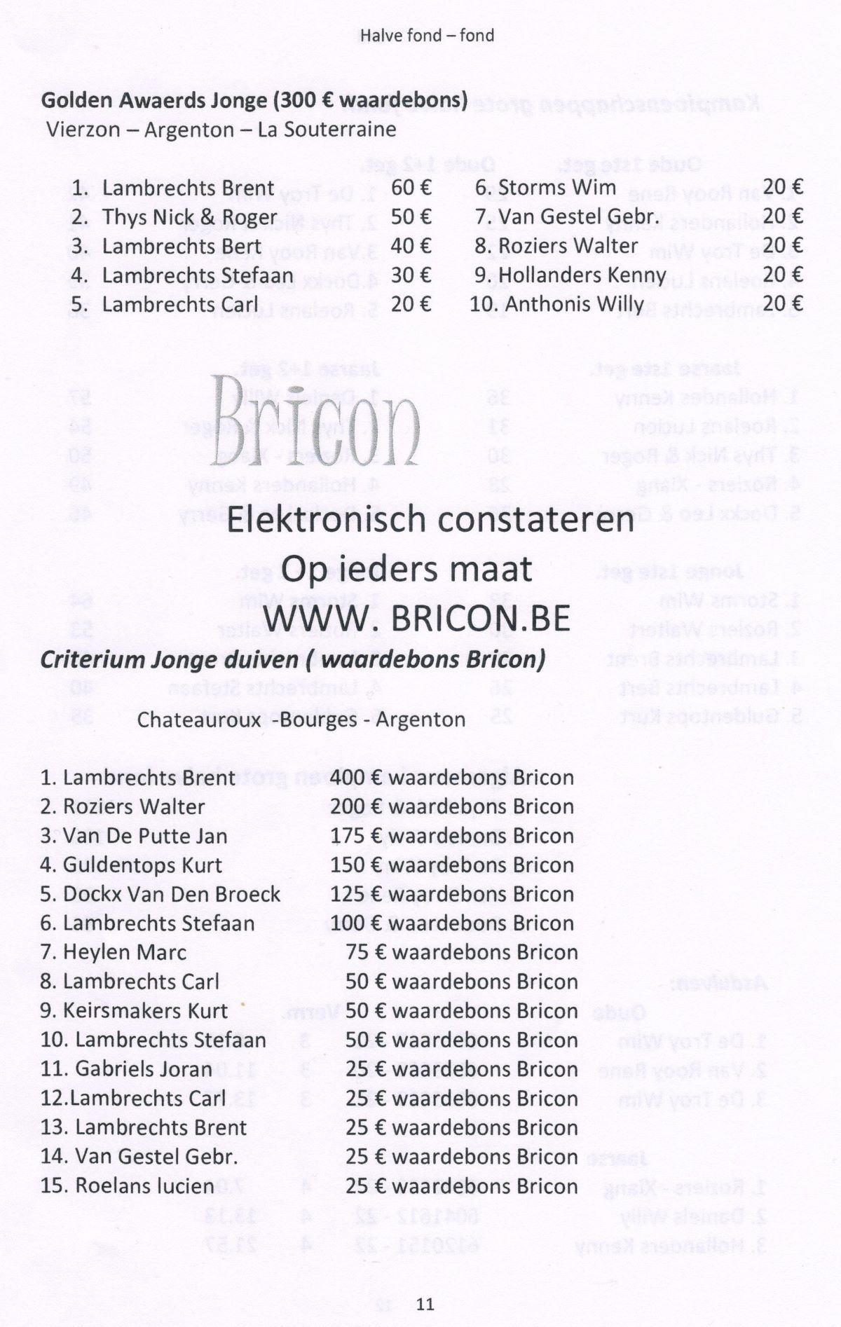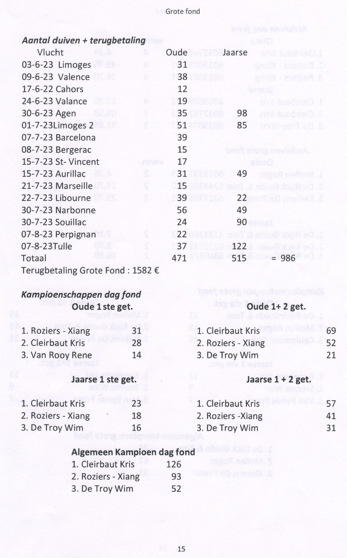 Kampioen Oude duiven 1e get Grote Fond: Tom & Guido De Rijck