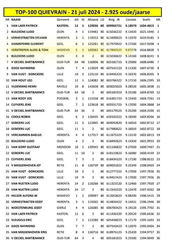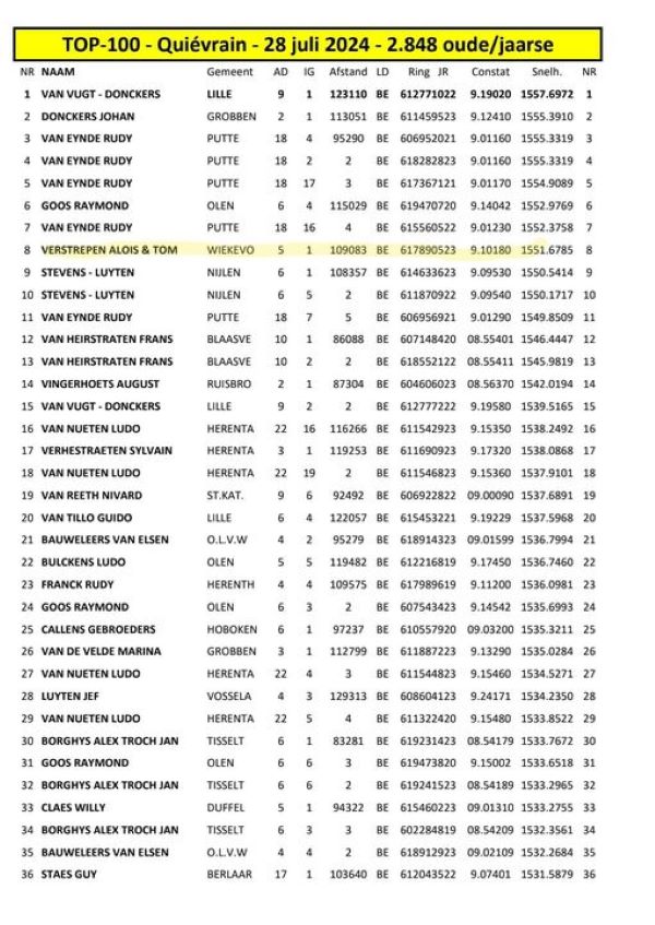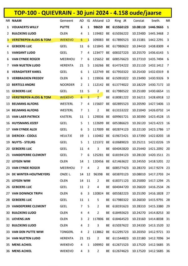 30 juli De 905 staat er toch weer mooi tussen de snelste duiven van de prov.Antwerpen [💪]