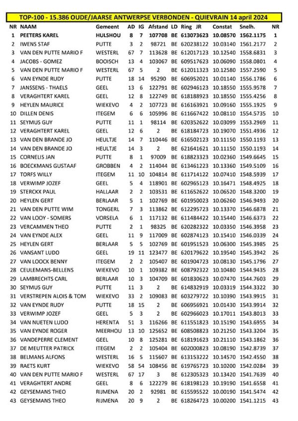 - 5de Kampioen Jonge duiven Quievrain 2023 samenspel KEMPENS VERBOND