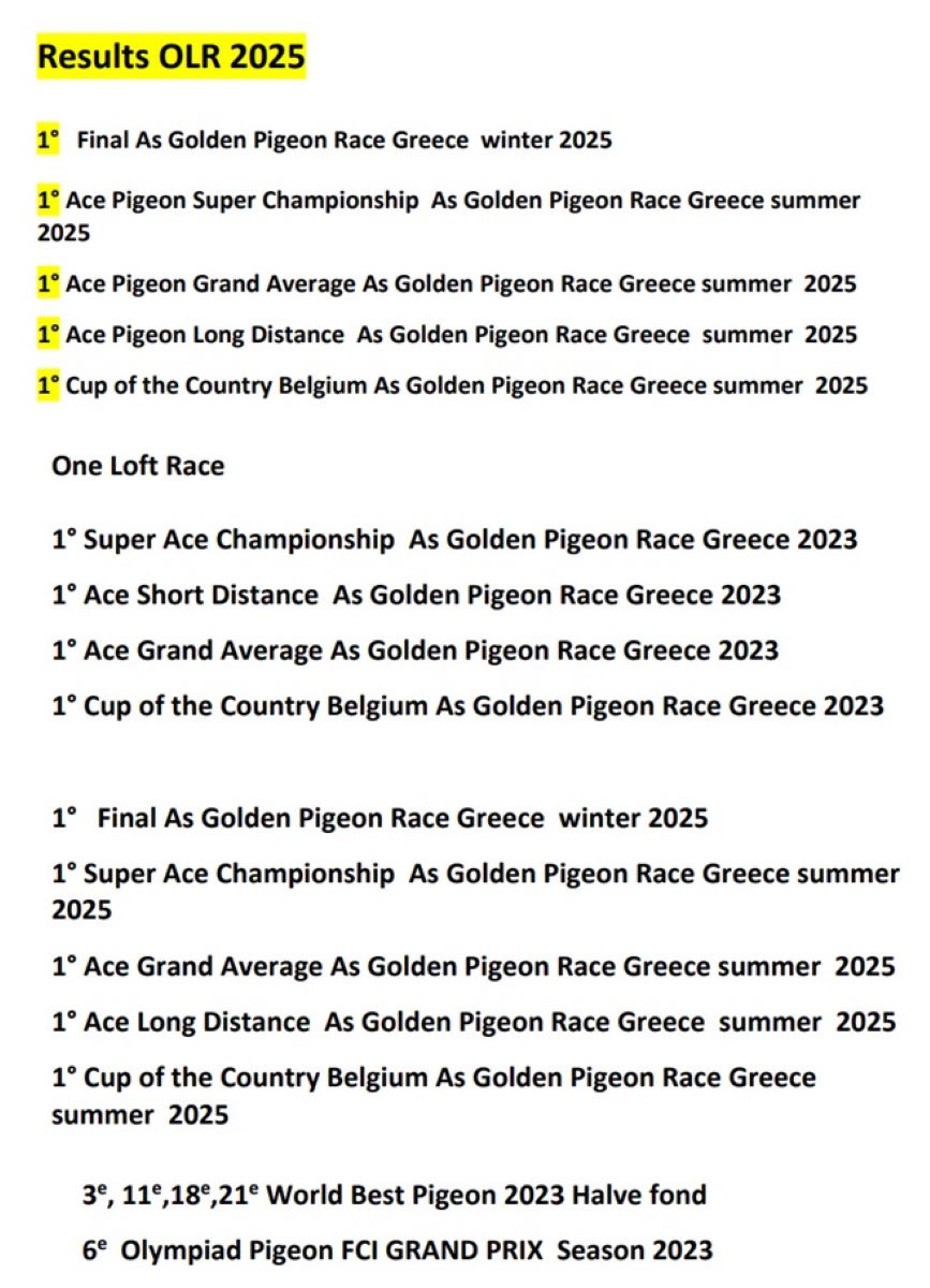 1° Ace Grand Average As Golden Pigeon Race Greece summer 2025
