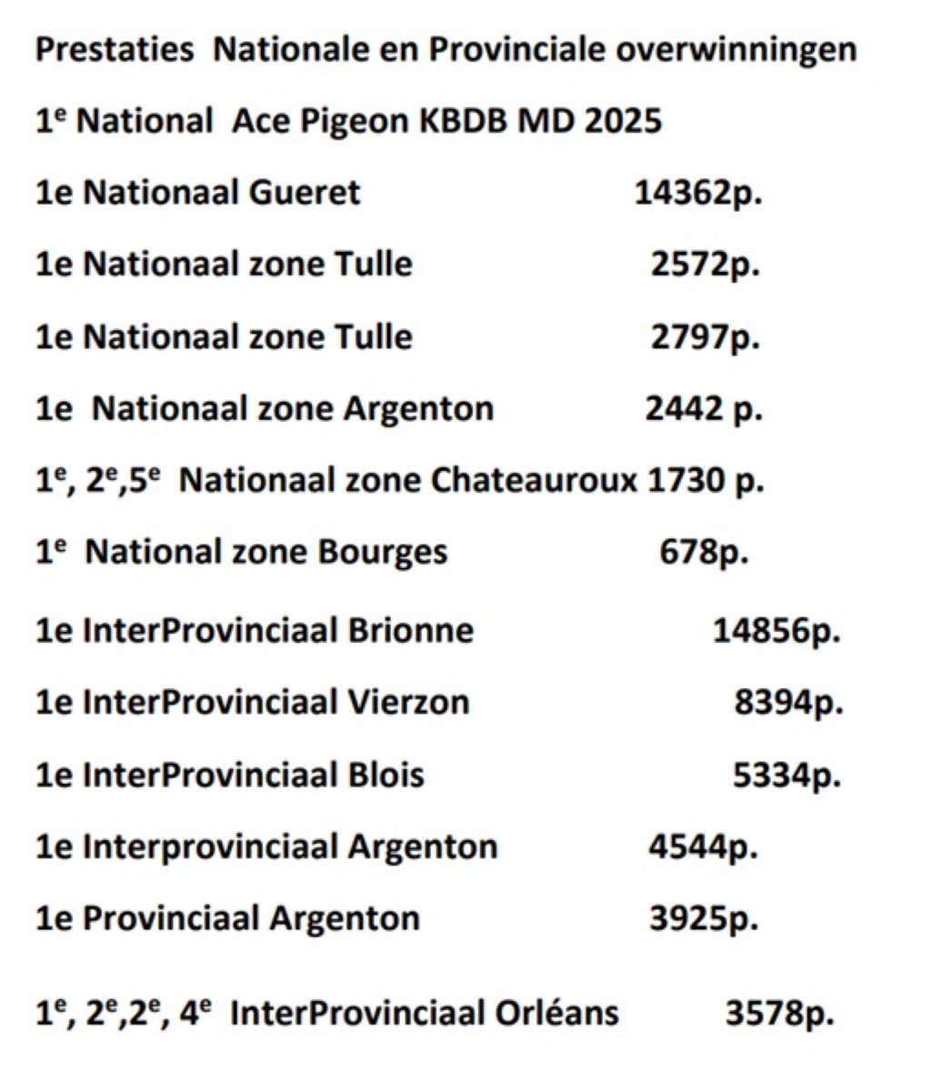 Seizoensoverzicht 2025 Kempenduiven: Annick Goeteyn - G Pigeons (Deinze)