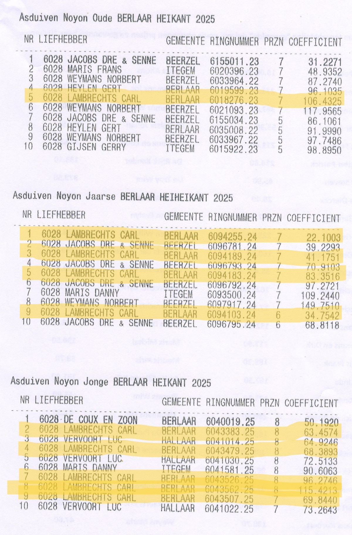 4e Kampioen Jonge duiven 1-2e-3 get Noyon 2025 ANTWERPEN CENTRAAL