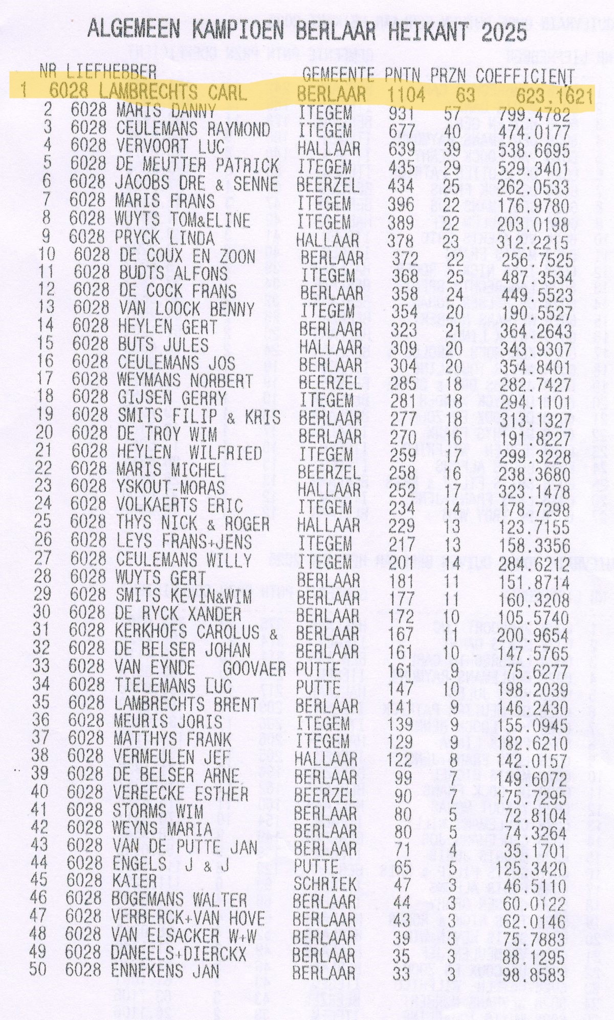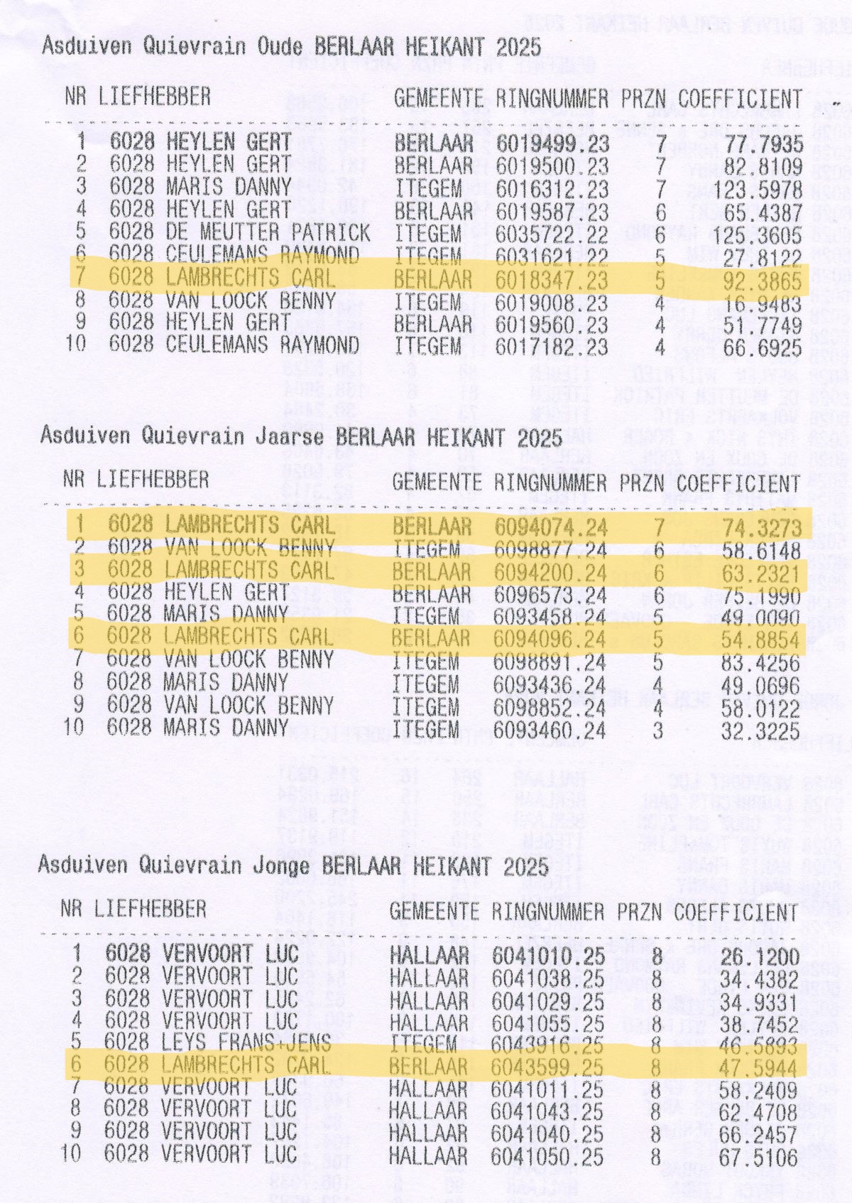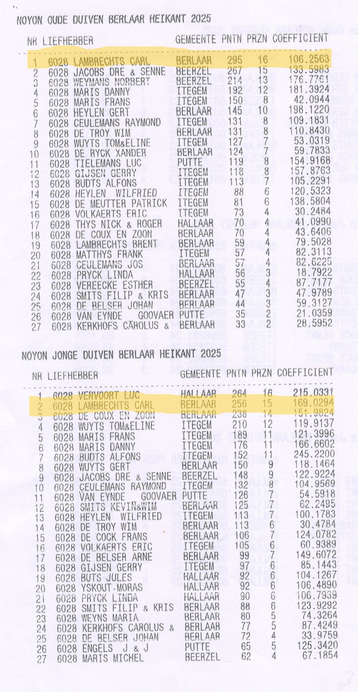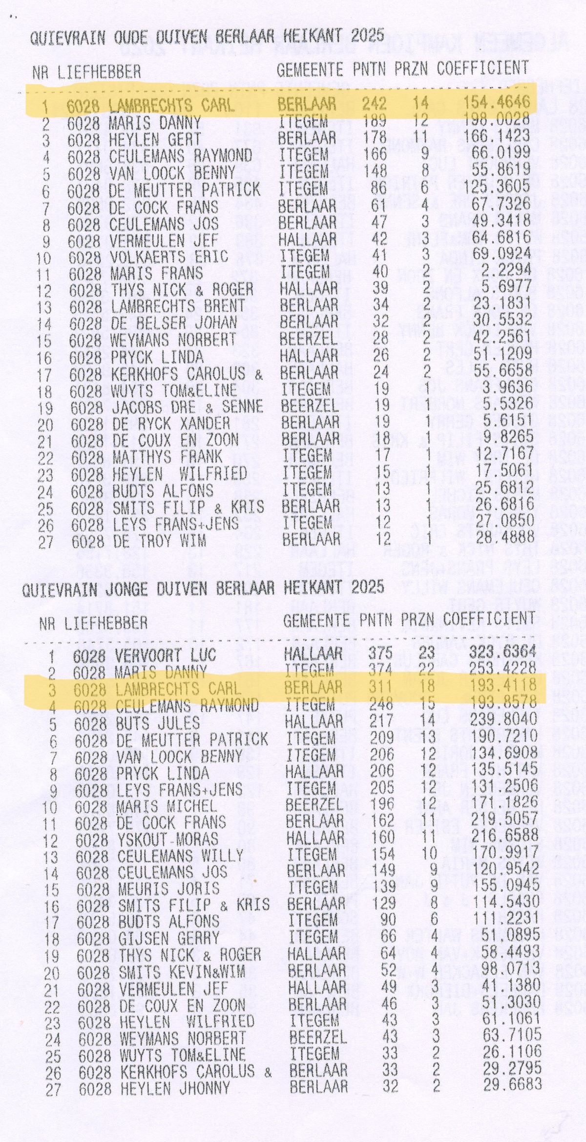 Seizoensoverzicht 2025 Kempenduiven: Carl Lambrechts (Berlaar)