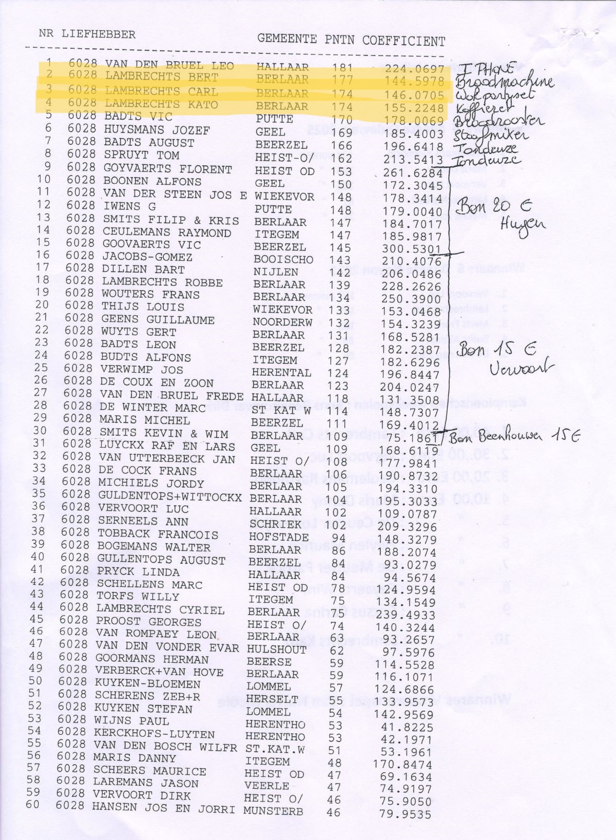 Opnieuw mooie resultaten voor CARL LAMBRECHTS uit Berlaar (Antwerpen), met volgende Top-Noteringen en Ereprijzen de voorbije seizoenen ...