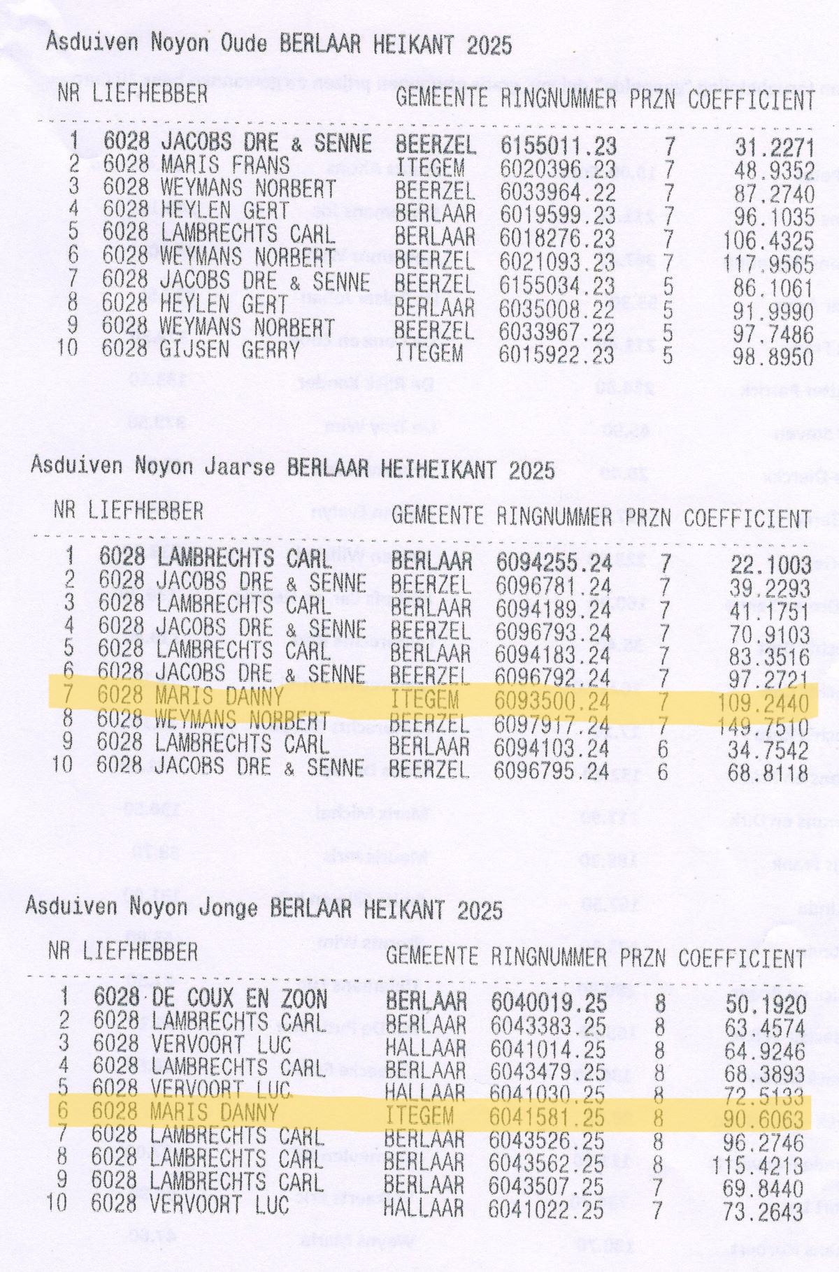 BE24-6093500 '500' 7e ASDUIF JAARSE DUIVEN NOYON 2025 Verbroedering BERLAAR-HEIKANT
