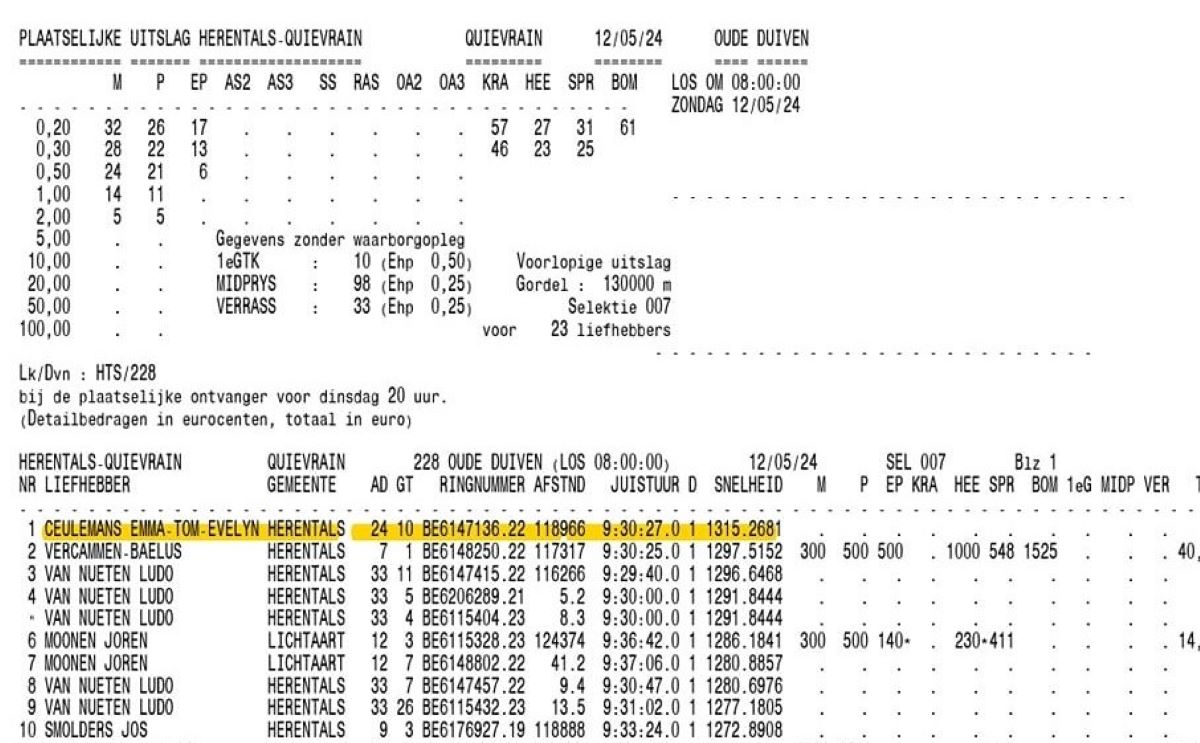 Ze hebben daar dan ook soort van zitten alsook van een duivenliefhebber van Limburg dat leverde ook al goede duiven op.